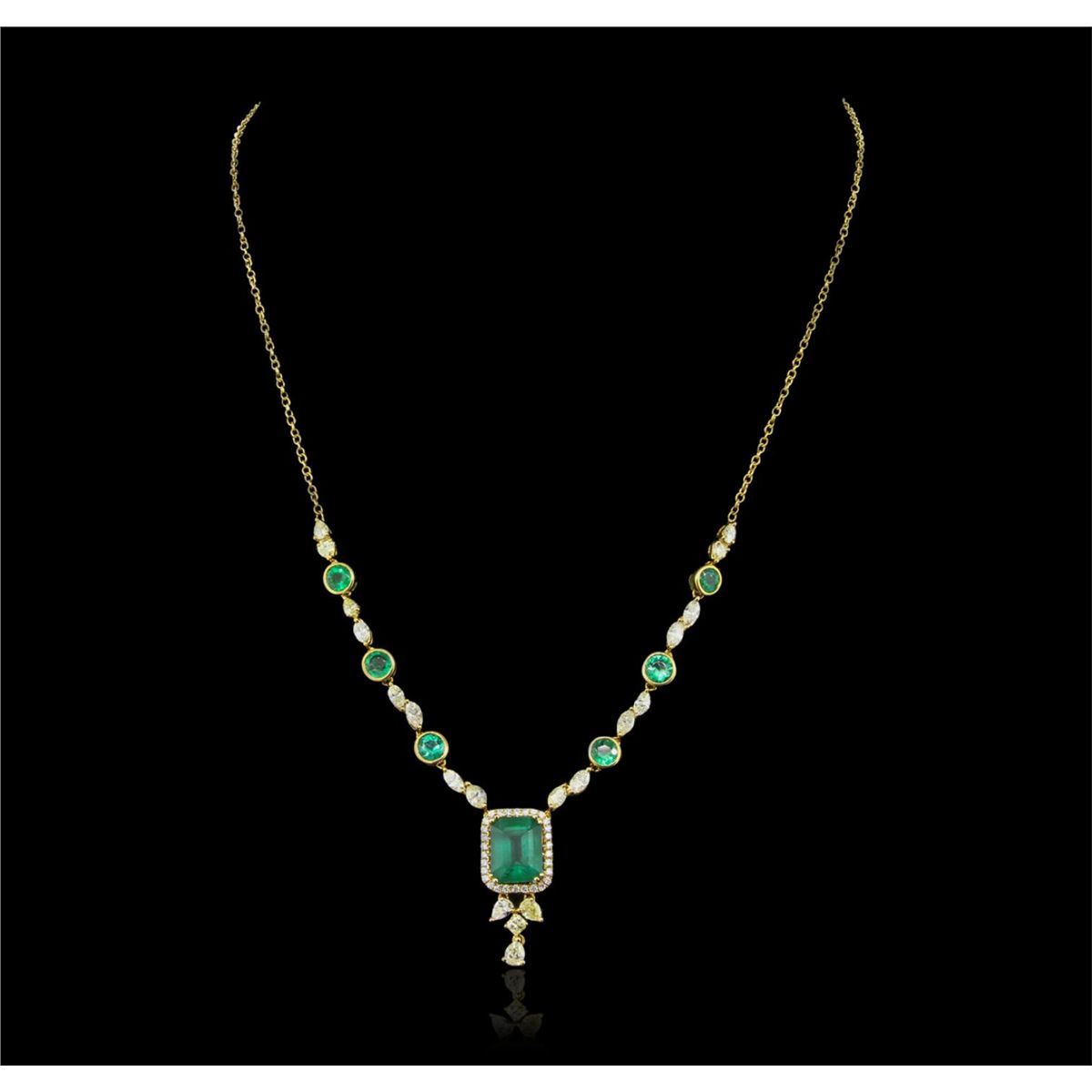 18KT Yellow Gold 4.77ctw Emerald and Diamond Necklace FJM3438