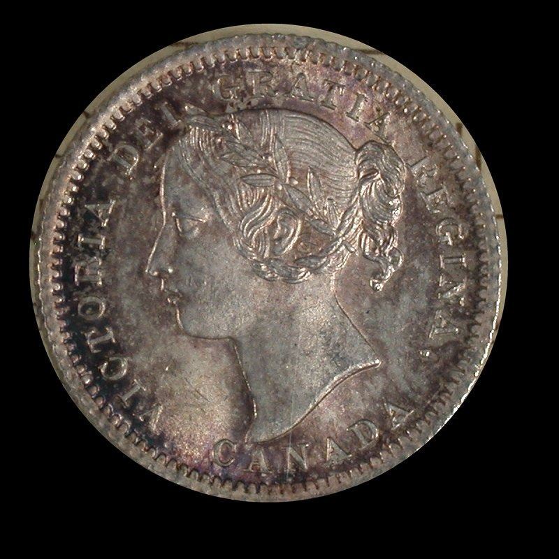 ICCS MS-65 with lovely obverse toning in pink and gold, and deeper reverse toning with hues of violet and blue. The finest example for the date we've handled in 20 years and a choice Victorian type-coin