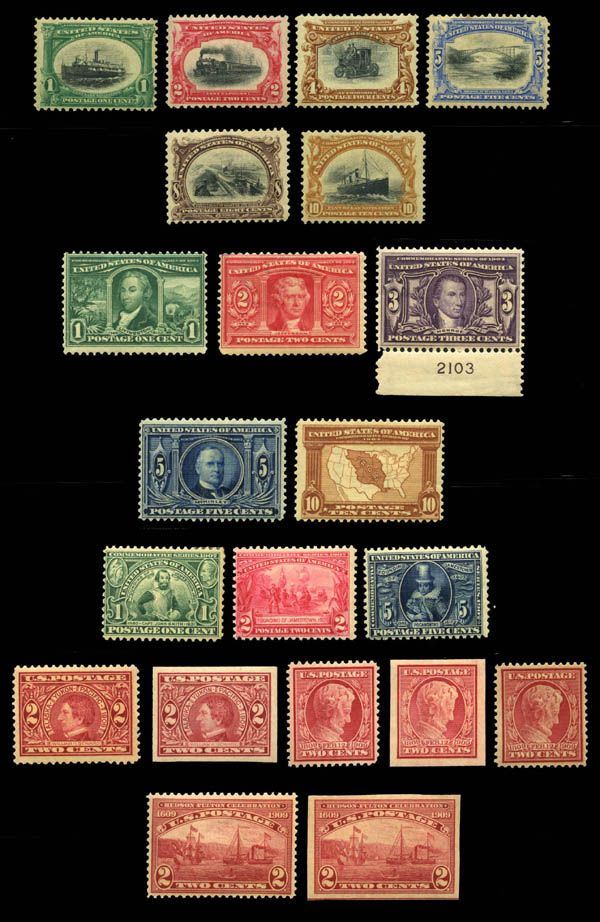1901-09, Pan-Americans, Louisiana Purchase, Jamestown and 1909 commemoratives complete. OW FVF