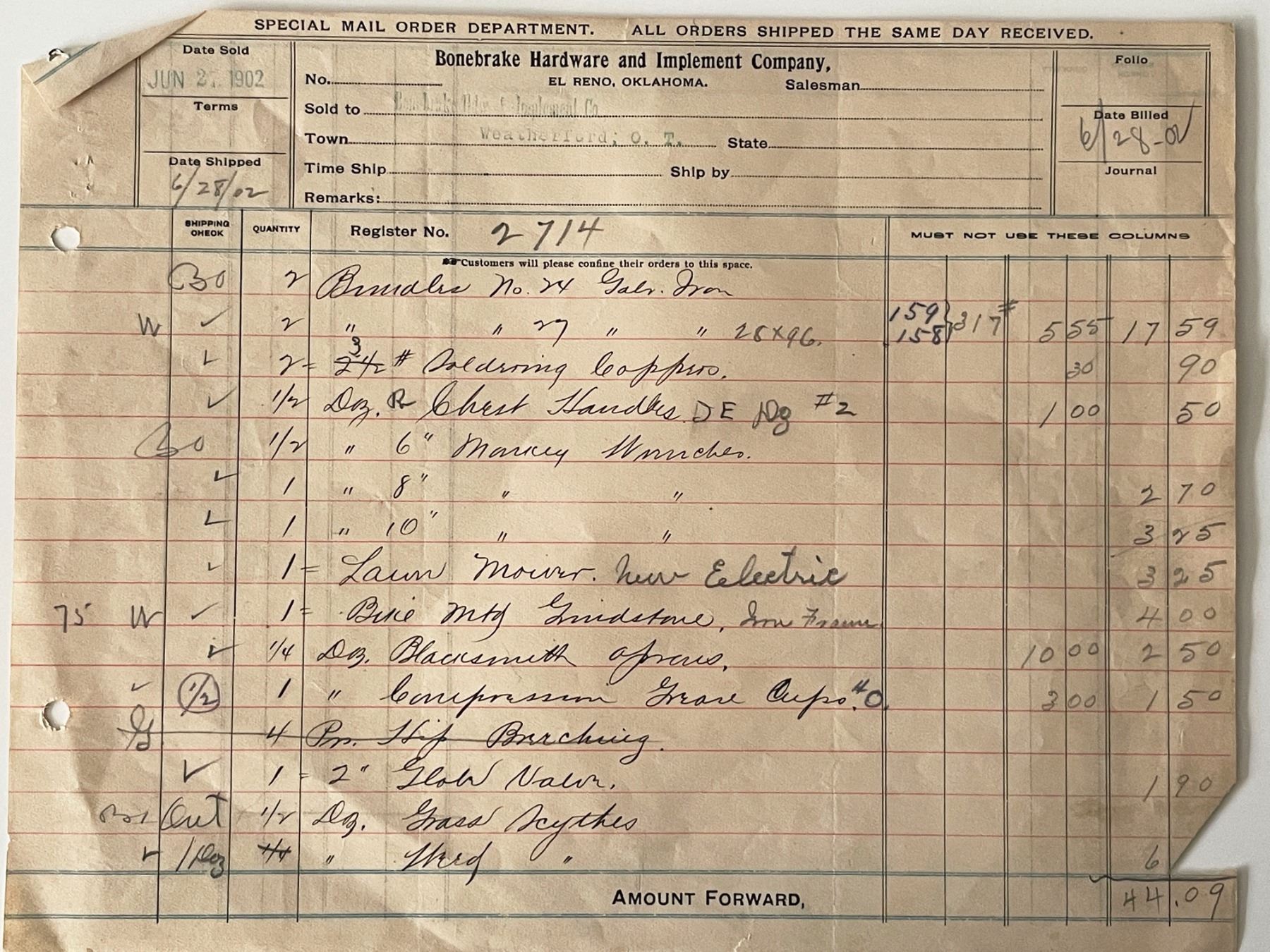 1902 Bronebrake Hardware store accounting log. 8x11 inches