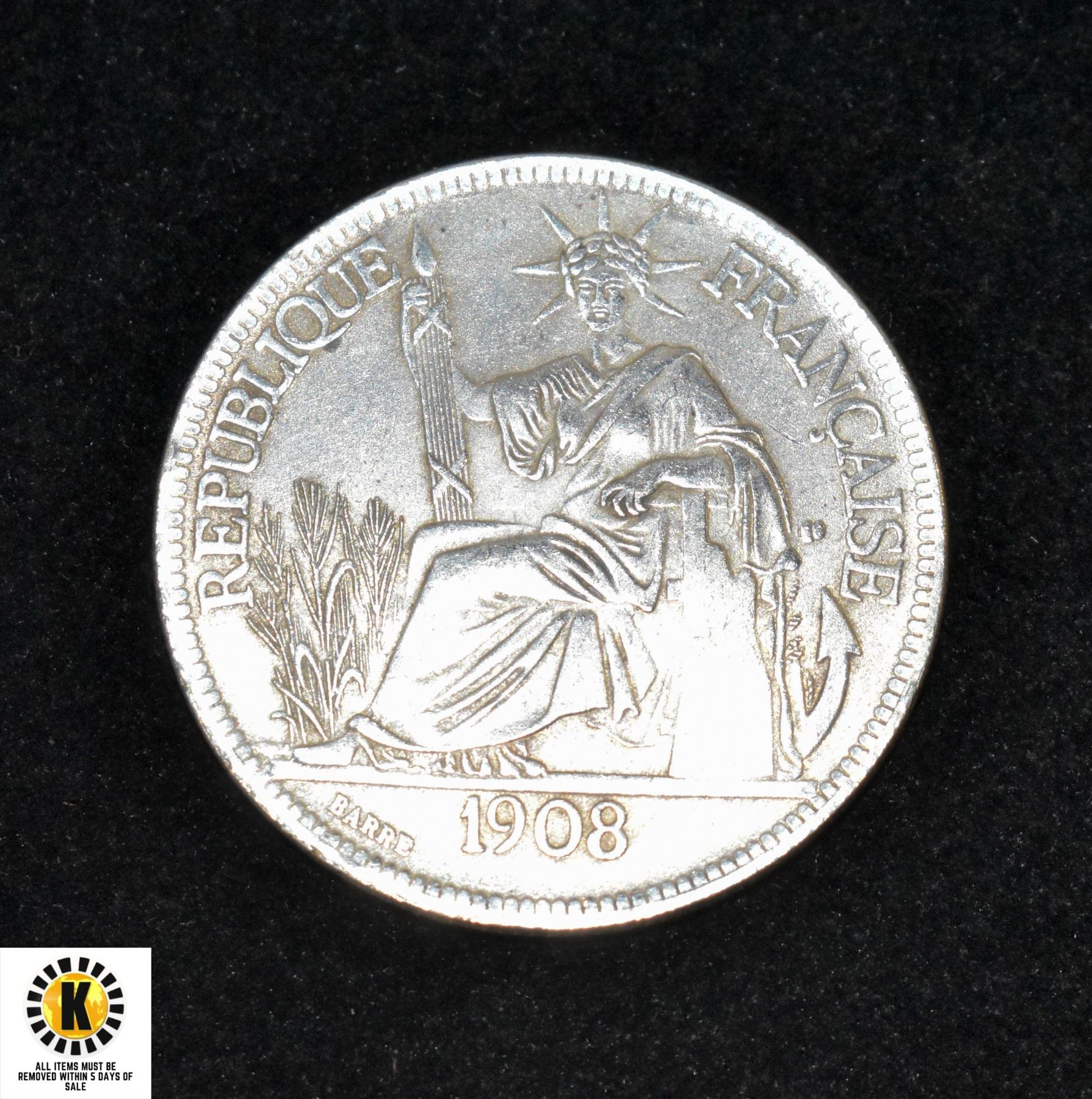 1908 FRENCH COMMERCE 0.900 LARGE SILVER COIN