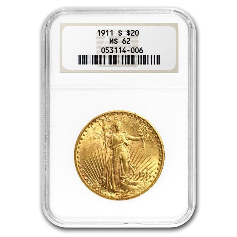 1911-S $20 Saint-Gaudens Gold Double Eagle MS-62 NGC