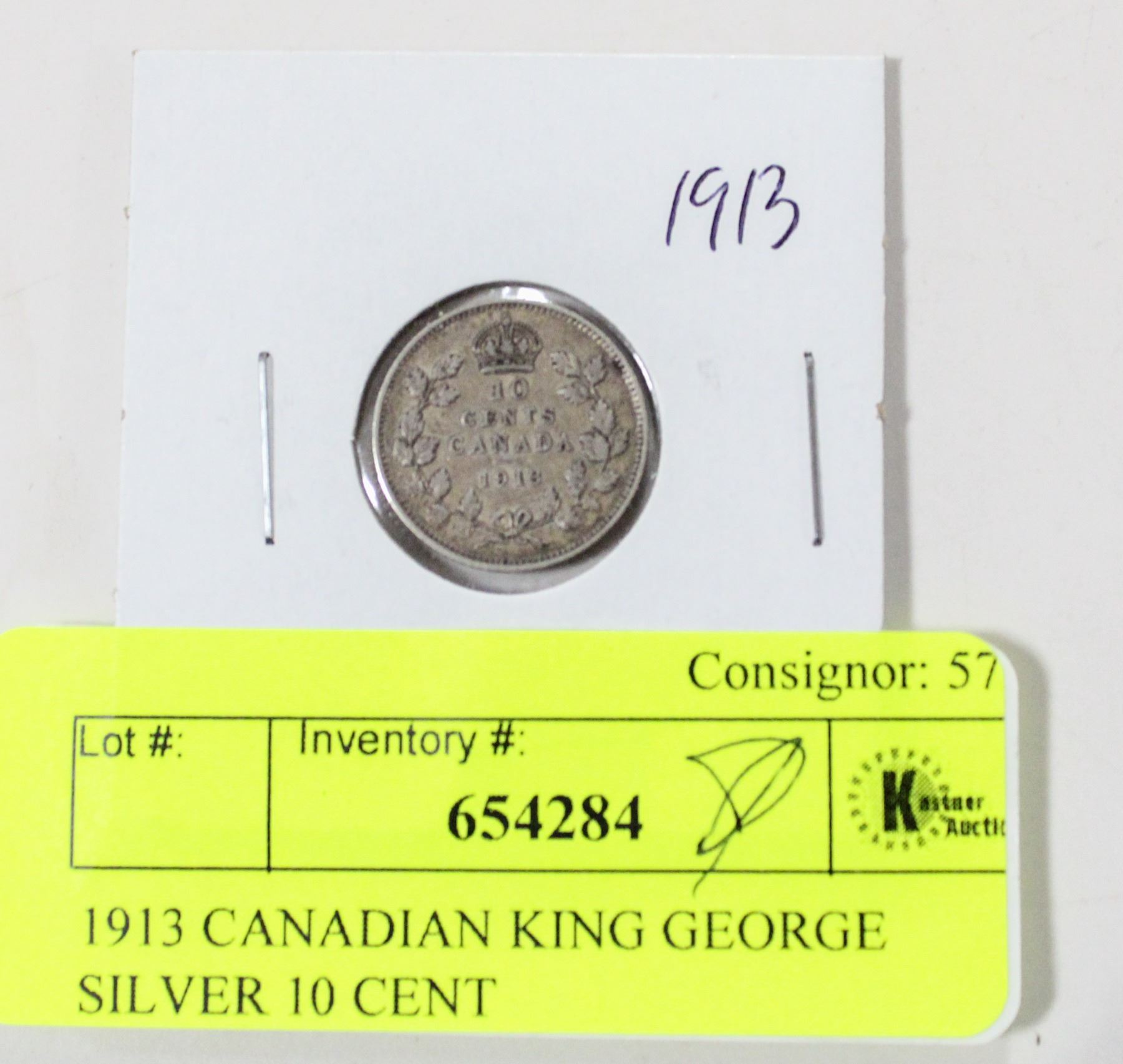 1913 CANADIAN KING GEORGE SILVER 10 CENT