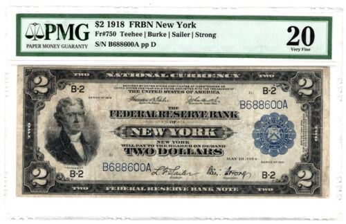 1918 $2 New York Battleship, NY Federal Reserve Banknote, PMG VF 20