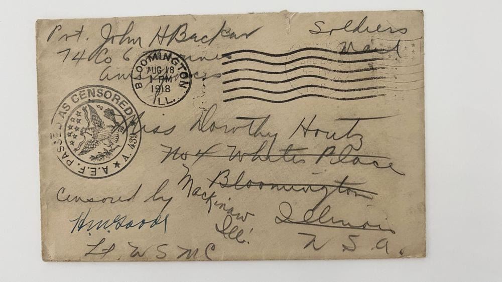 1918 - Bloomington, ILL. - Censored Cover - 'A.E.F Passed as Censored'.