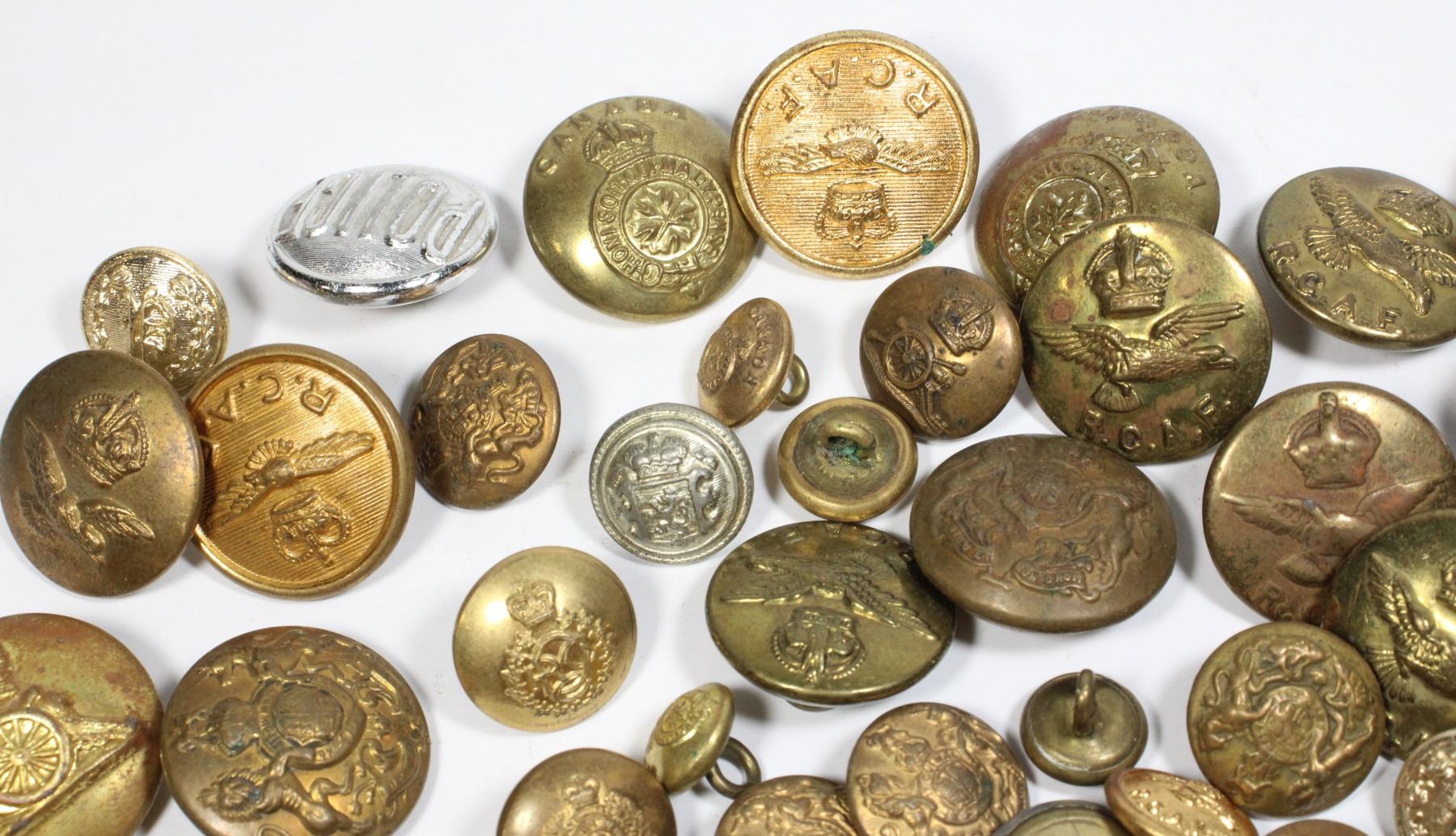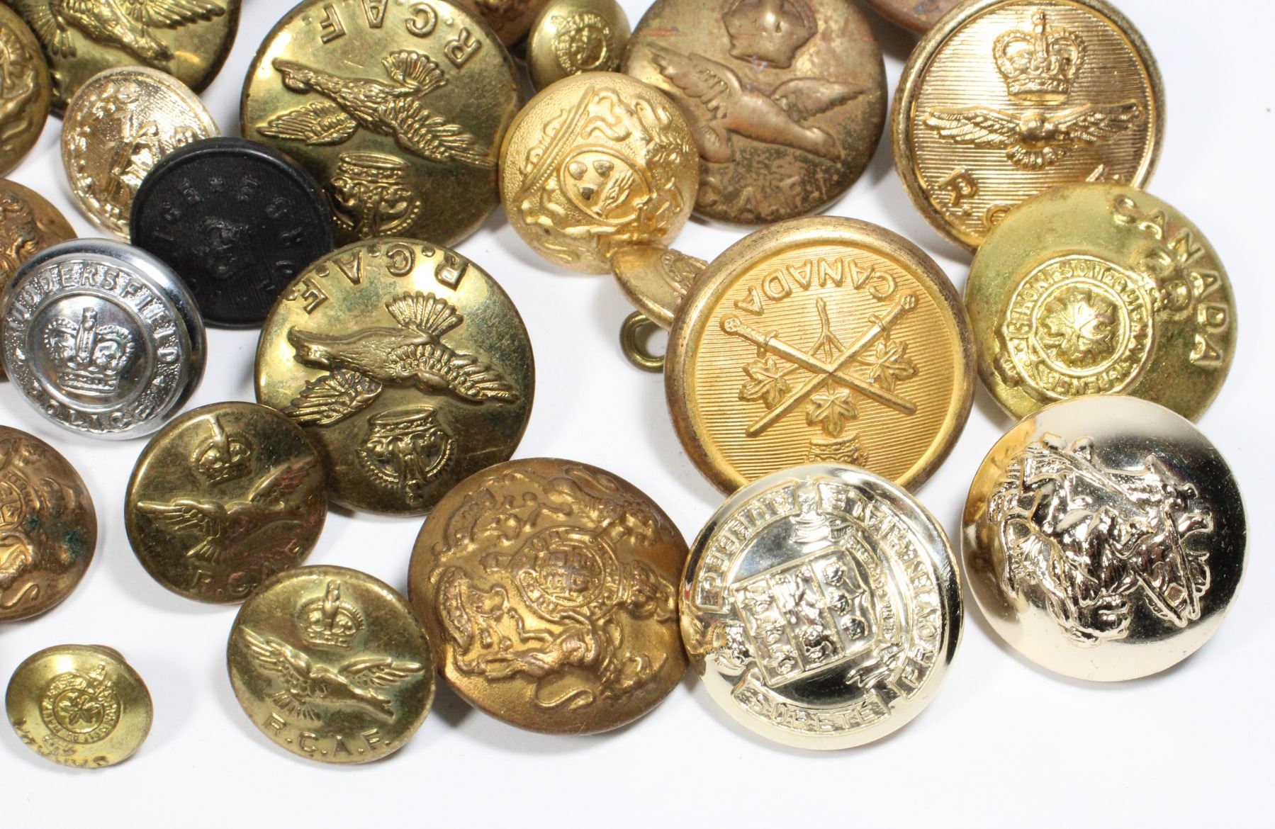 Lot includes British Canadian and Assorted buttons, assorted eras types etc