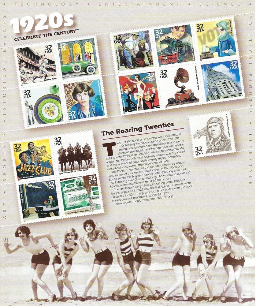 1920s Celebrate the Century Stamp Sheet