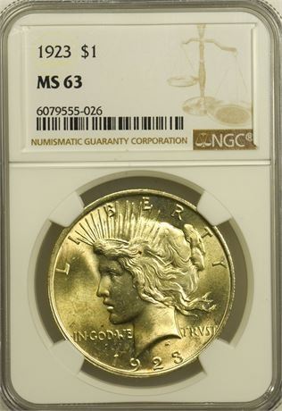1923 Peace Dollar NGC MS-63 #6079555-026 Estimate: $69 5107.19