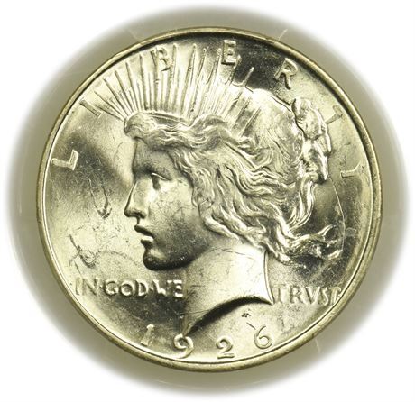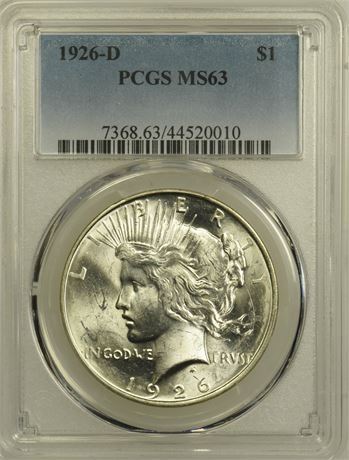 1926-D Peace Dollar PCGS MS-63 #44520010 Flashy coin. Estimate: $475 PC00352