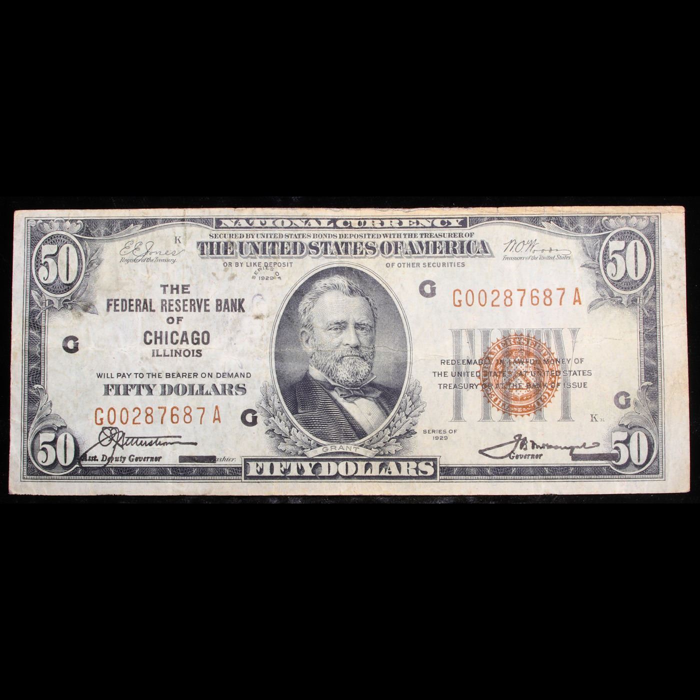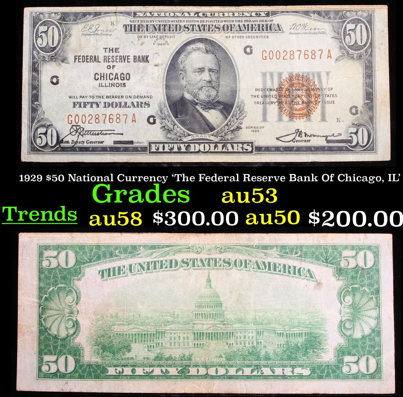 1929 $50 National Currency 'The Federal Reserve Bank Of Chicago, IL' Grades Select AU.