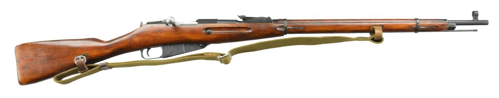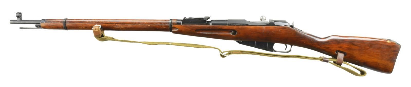 RIFLE IN 91/30 CONFIGURATION. Cal. 7.62x54R. S# T121226 (importer S#). Bbl. 28.7" w/ protected post front sight, 2,000m tangent rear sight, marked w/ 1929 date & "60324" Russian S#. Matching numbered bolt, mag. floorplate, & buttplate. Hex receiver w/ RGuns Carpentersville, IL import mark on left side. Hardwood stock set w/ cleaning rod & web sling on leather "dog collars". CONDITION: very good as arsenal refinished wood & metal w/ marks throughout. Good bore w/ strong rifling. PROVENANCE: from the estate collections of Charles P. Obremski. (22-1340/MD). CURIO. $300-400.
