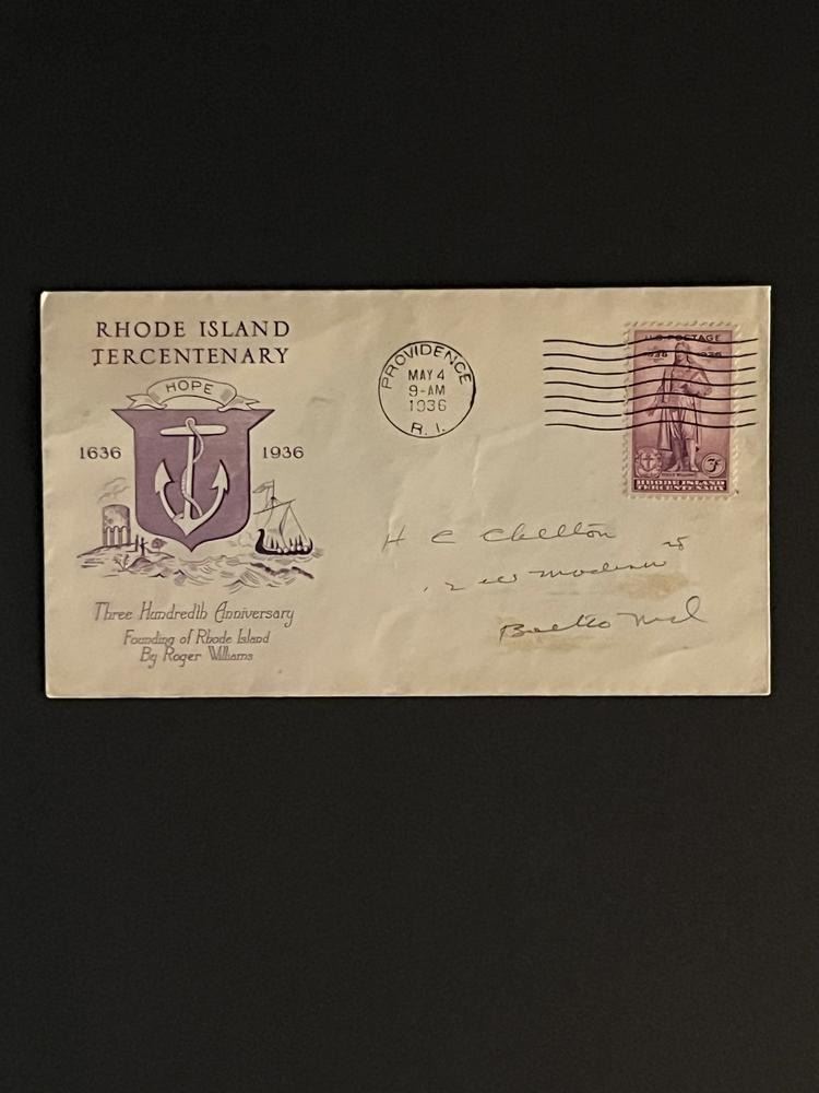 1936 Rhode Island Tercentenary First Day Cover