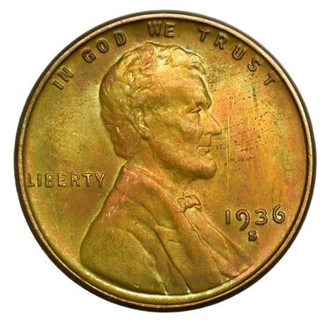 1936-S Lincoln Wheat Cent - Toned