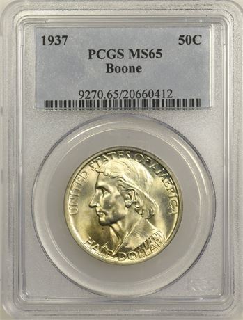 1937 Boone Commemorative Half Dollar PCGS MS-65 #20660412 Estimate: $220 PC00309