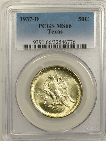 1937-D Texas Commemorative Half Dollar PCGS MS-66 #32546776 Estimate: $325 PC00319