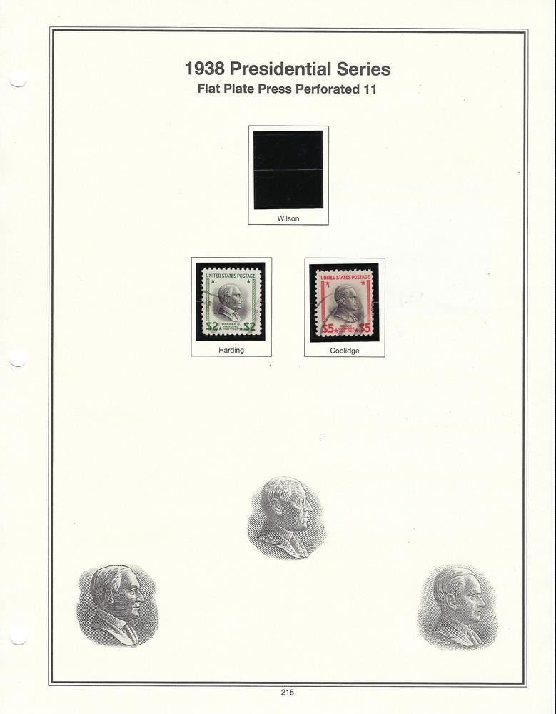 1938 Presidential Series commemorative stamps sheet