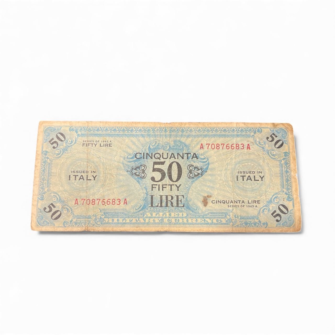 1943 Allied Military Currency Italian 50 Lire Bill - A Prefix Serial Number