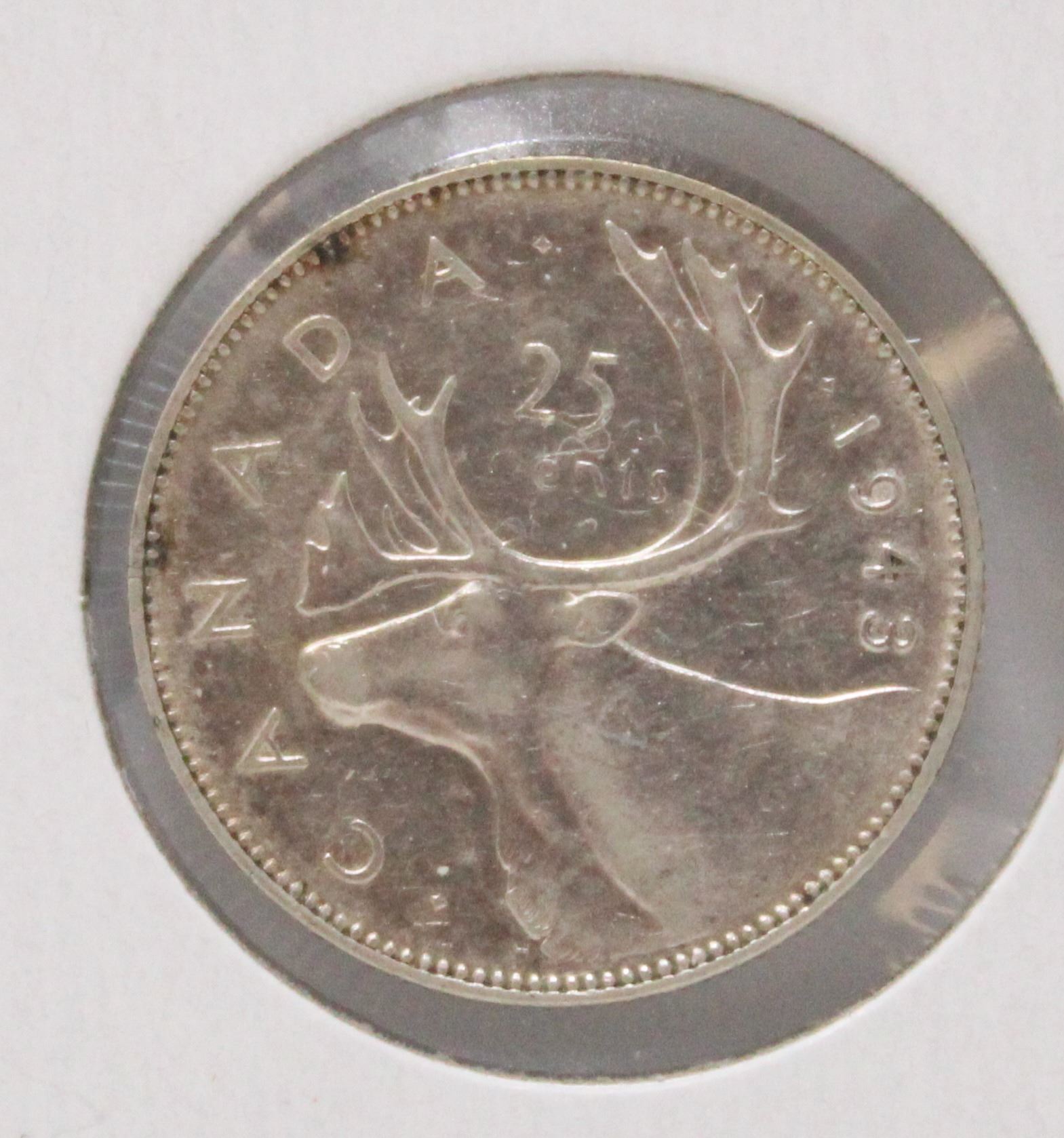 1943 SILVER CANADA 25 CENTS COIN, EXTRA FINE