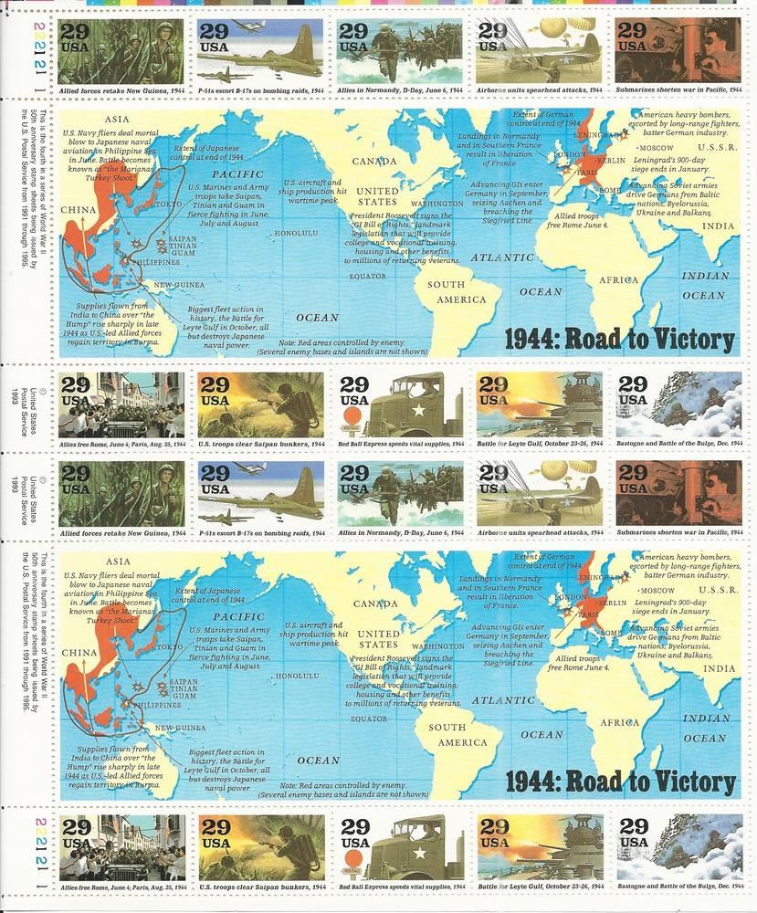 1944 WWII Road to Victory Sheet Collectible Stamp Sheet of 20 29 Cent Stamps Scott 2838