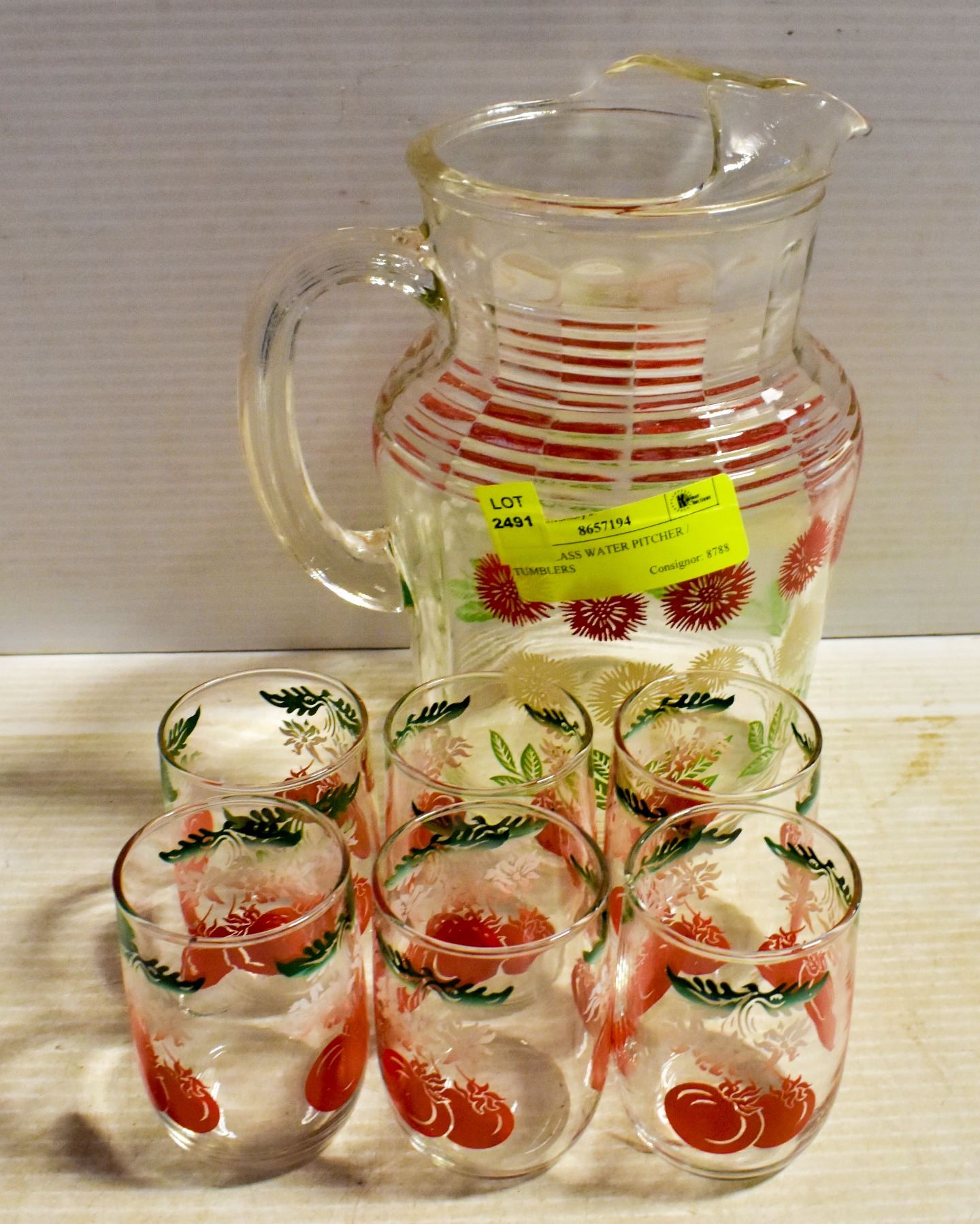 1950'S GLASS WATER PITCHER / TUMBLERS
