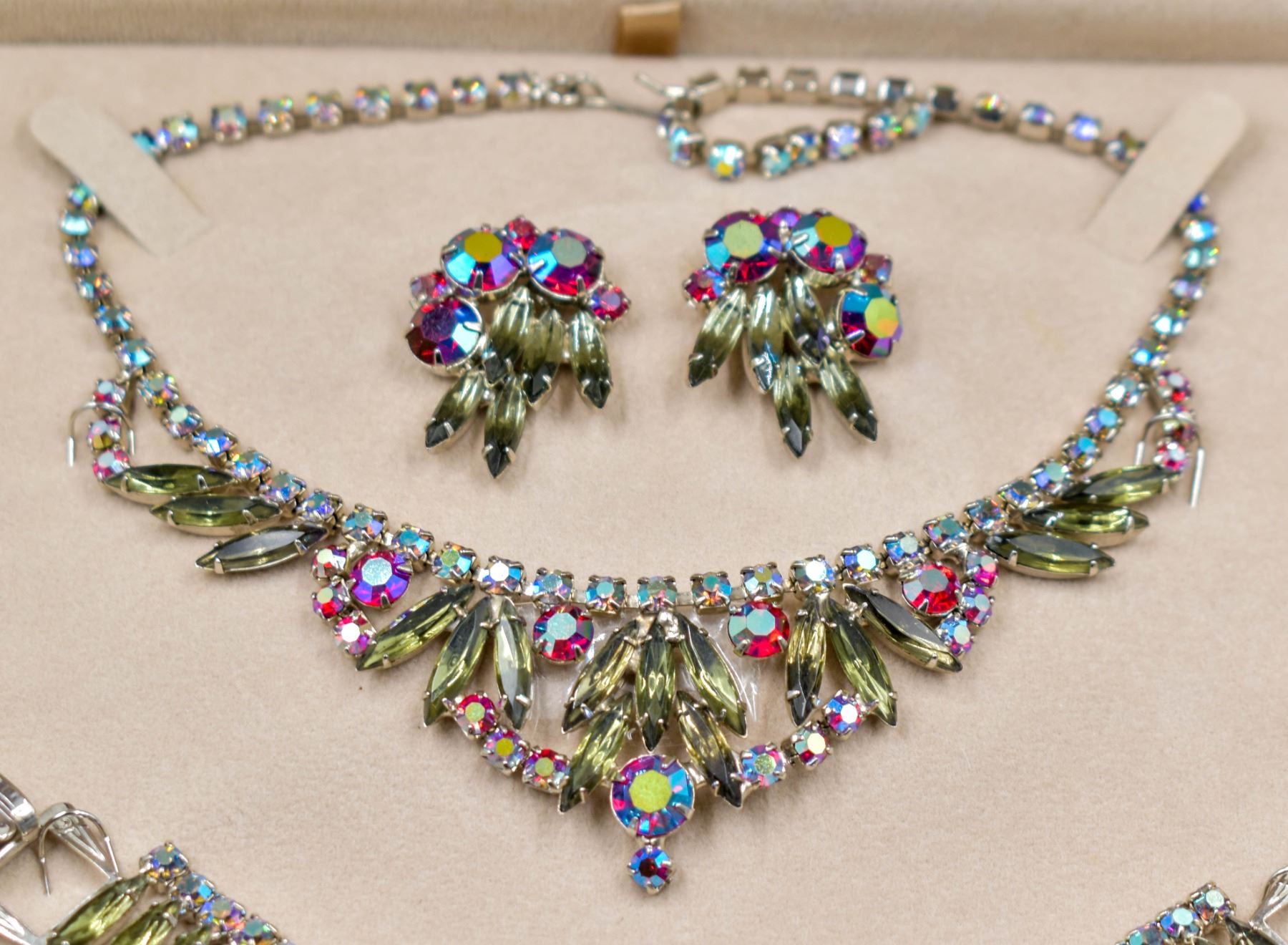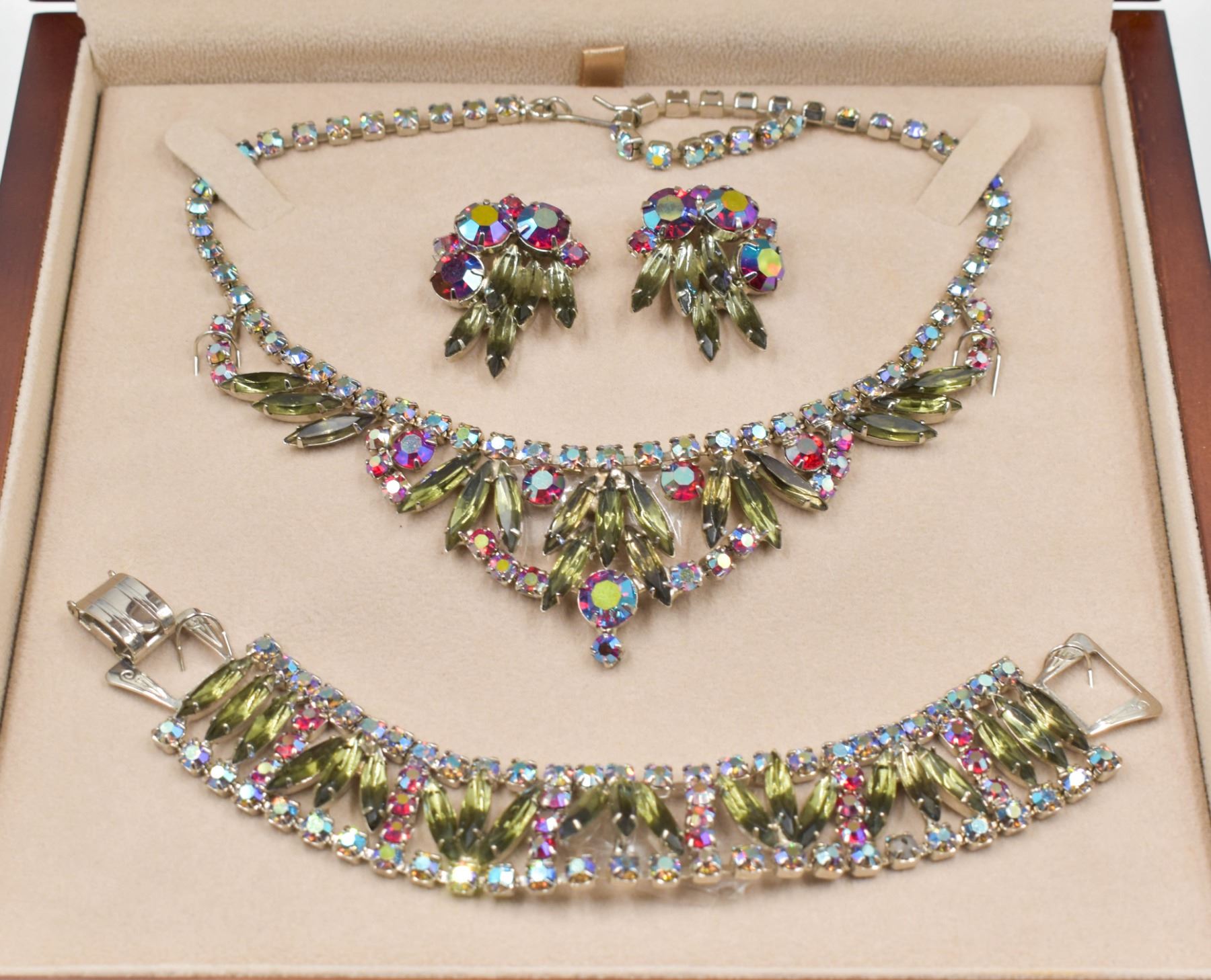 1950'S RHINESTONE NECKLACE, BRACELET & EARRINGS