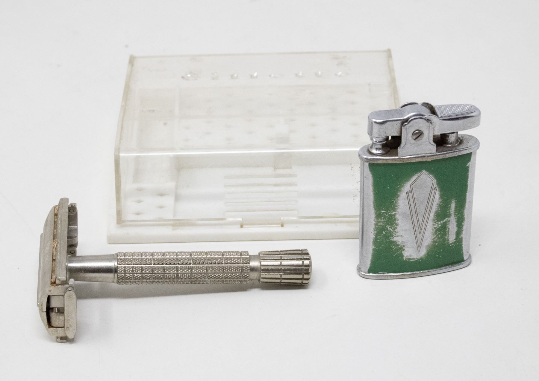 1950S GILLETTE SAFETY RAZOR AND LIGHTER IN CASE