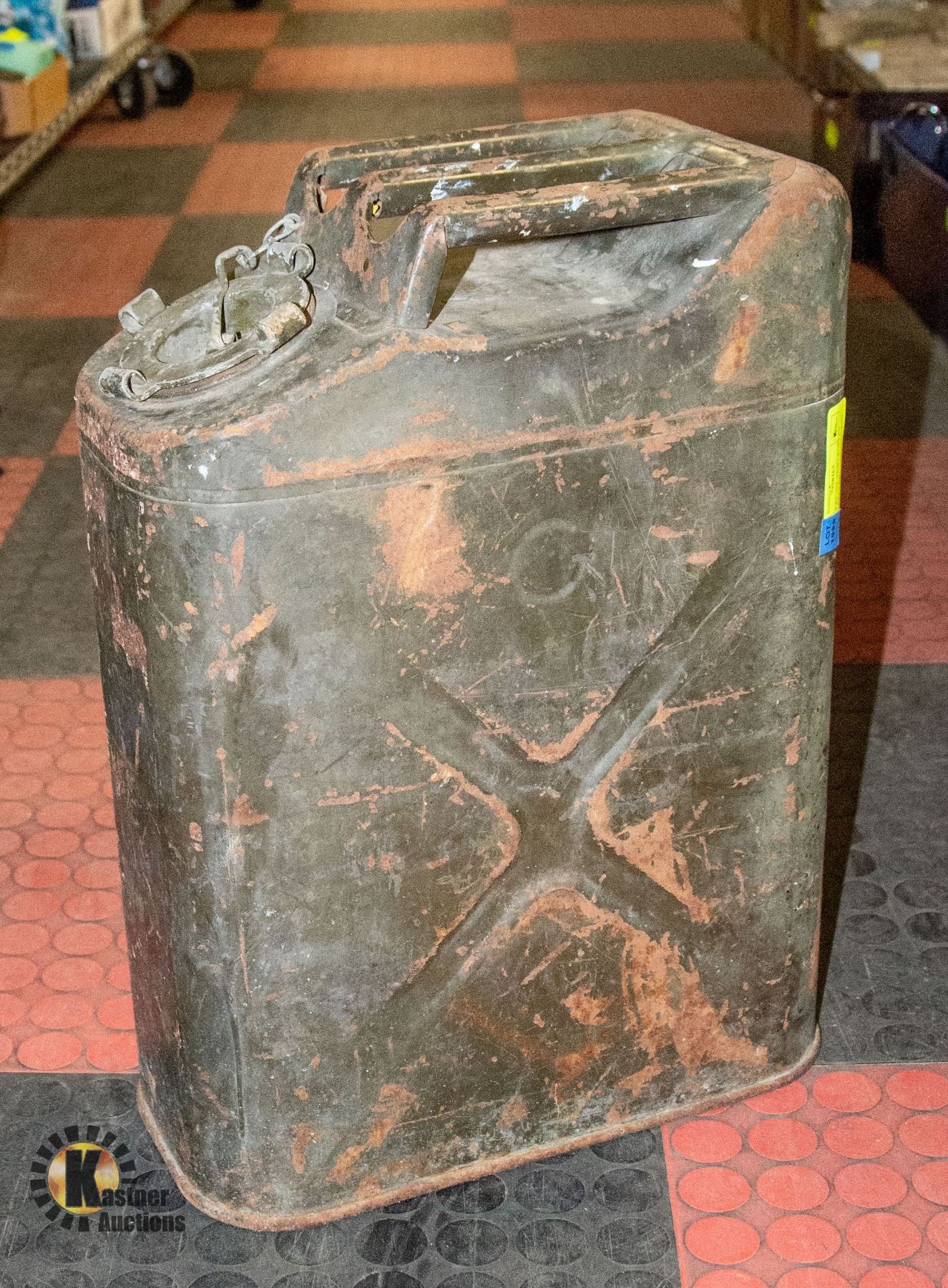 STAMPED 1CC-5L G.P & F. CO. 20 5 52. US MILITARY SUPPLY. 5 GAL, ARMY VEHICLE JERRY CAN. SOLID METAL **ALL ITEMS MUST BE REMOVED BY 5PM SATURDAY, APRIL 29TH 2023. ALL REMAINING ITEMS WILL BE SUBJECT TO A $6.00 PER DAY STORAGE CHARGE. ANY ITEMS REMAINING AFTER MONDAY, MAY 15TH, 2023 WILL BE CONSIDERED FORFEITED. NO REFUNDS WILL BE ISSUED FOR FORFEITED ITEMS. TO SCHEDULE A PICK UP APPOINTMENT CLICK HERE