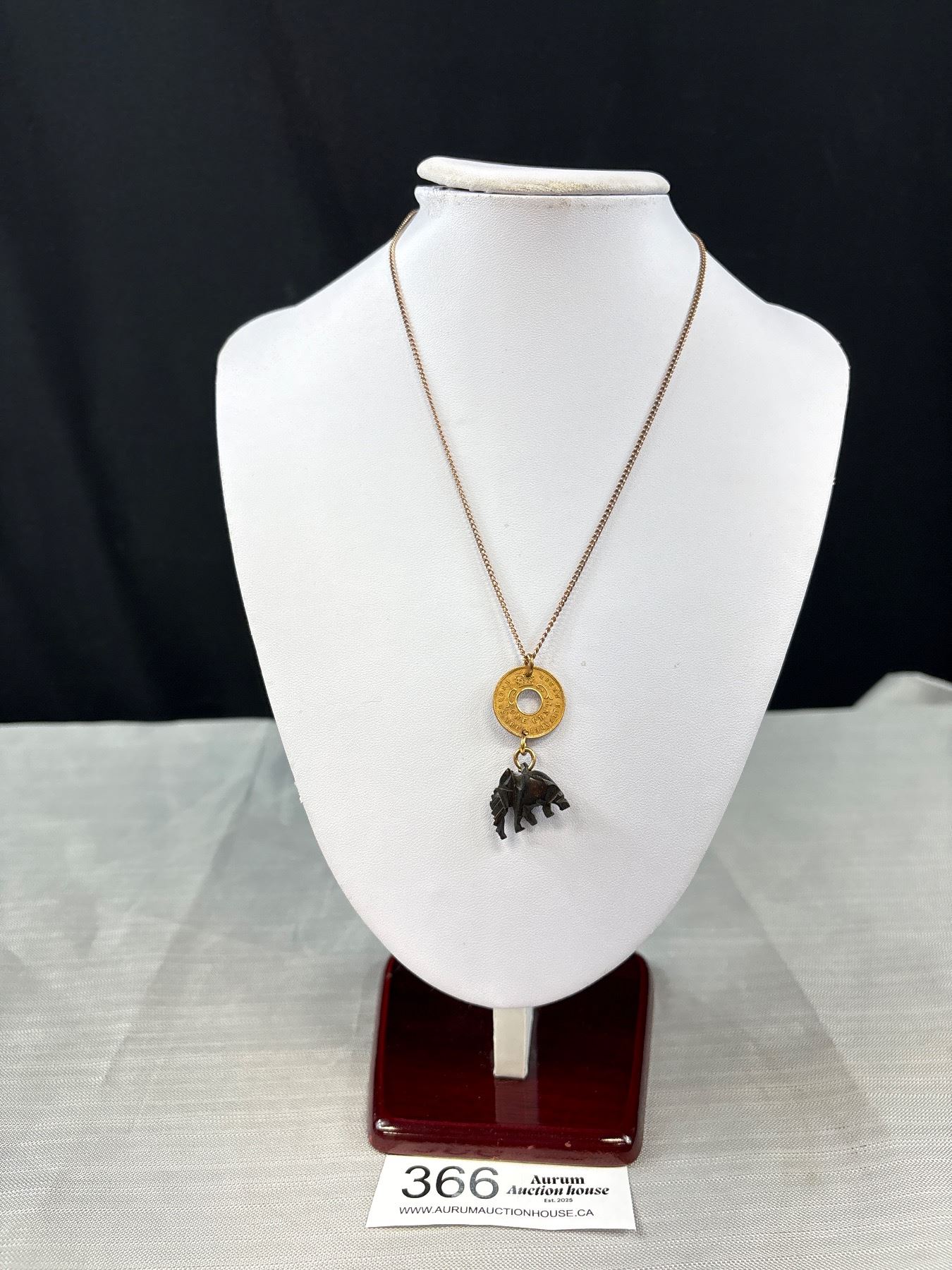 1955 East Africa Coin Pendant w/ Carved Elephant Tassel + Chain Necklace