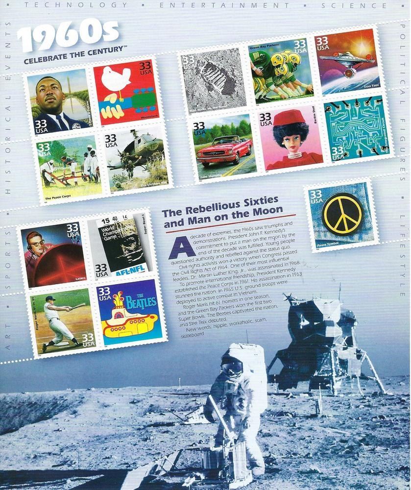 Celebrate the Century 1960s 15 x 33 Cent US Postage Stamps Scot #3188