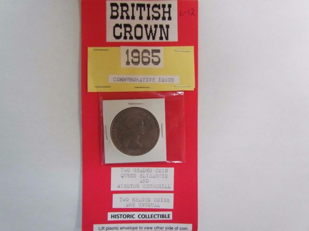Queen Elizabeth one side, Winston Churchill on other.
