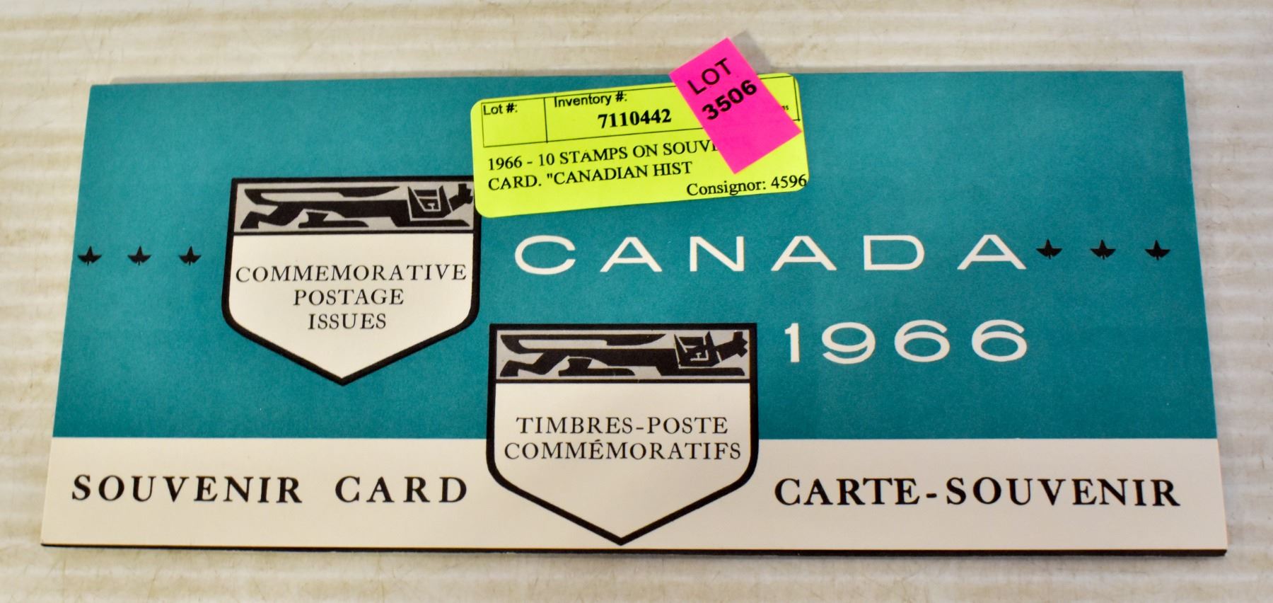 1966 - 10 STAMPS ON SOUVENIR CARD. "CANADIAN HIST