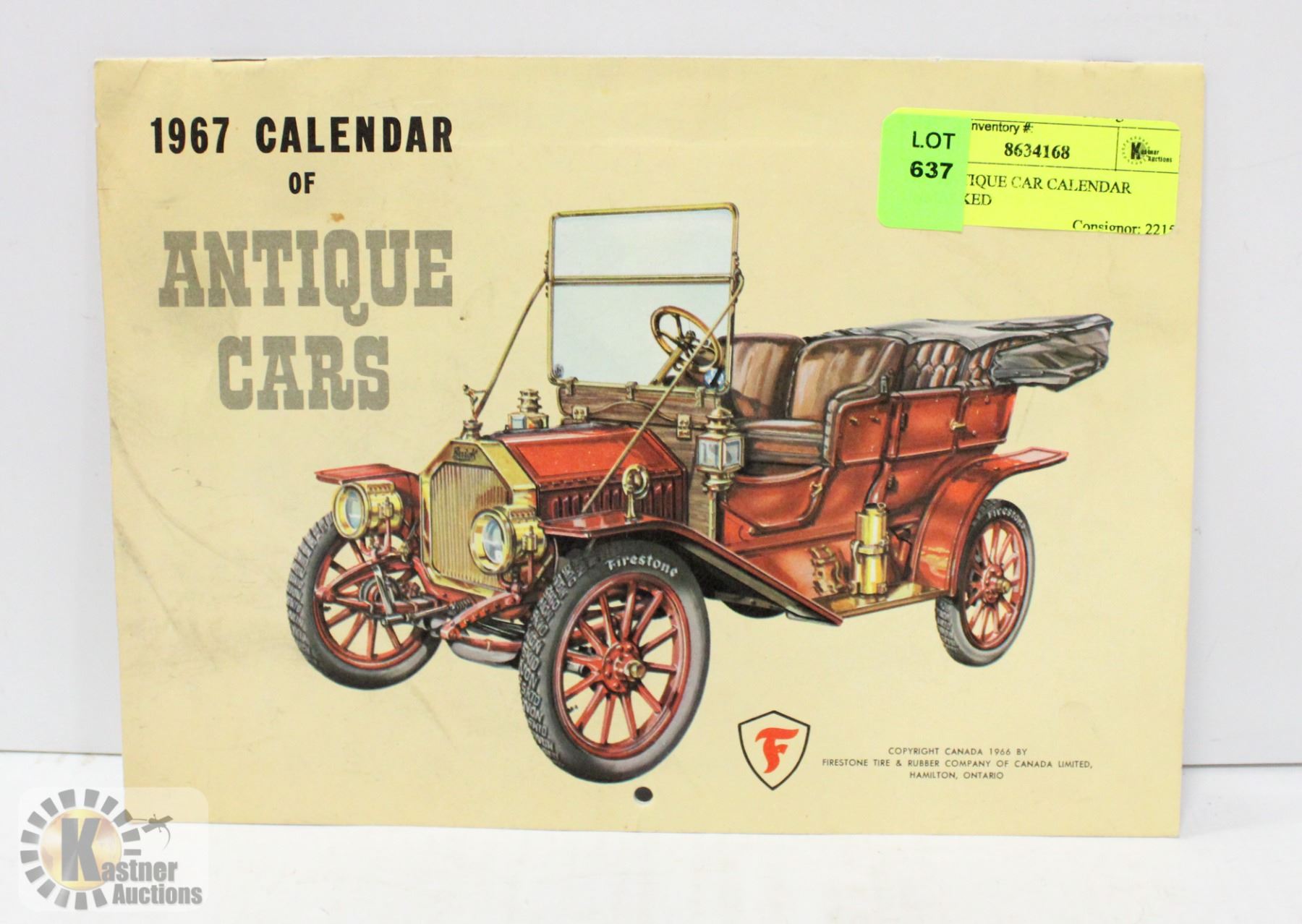 1967 ANTIQUE CAR CALENDAR UNMARKED