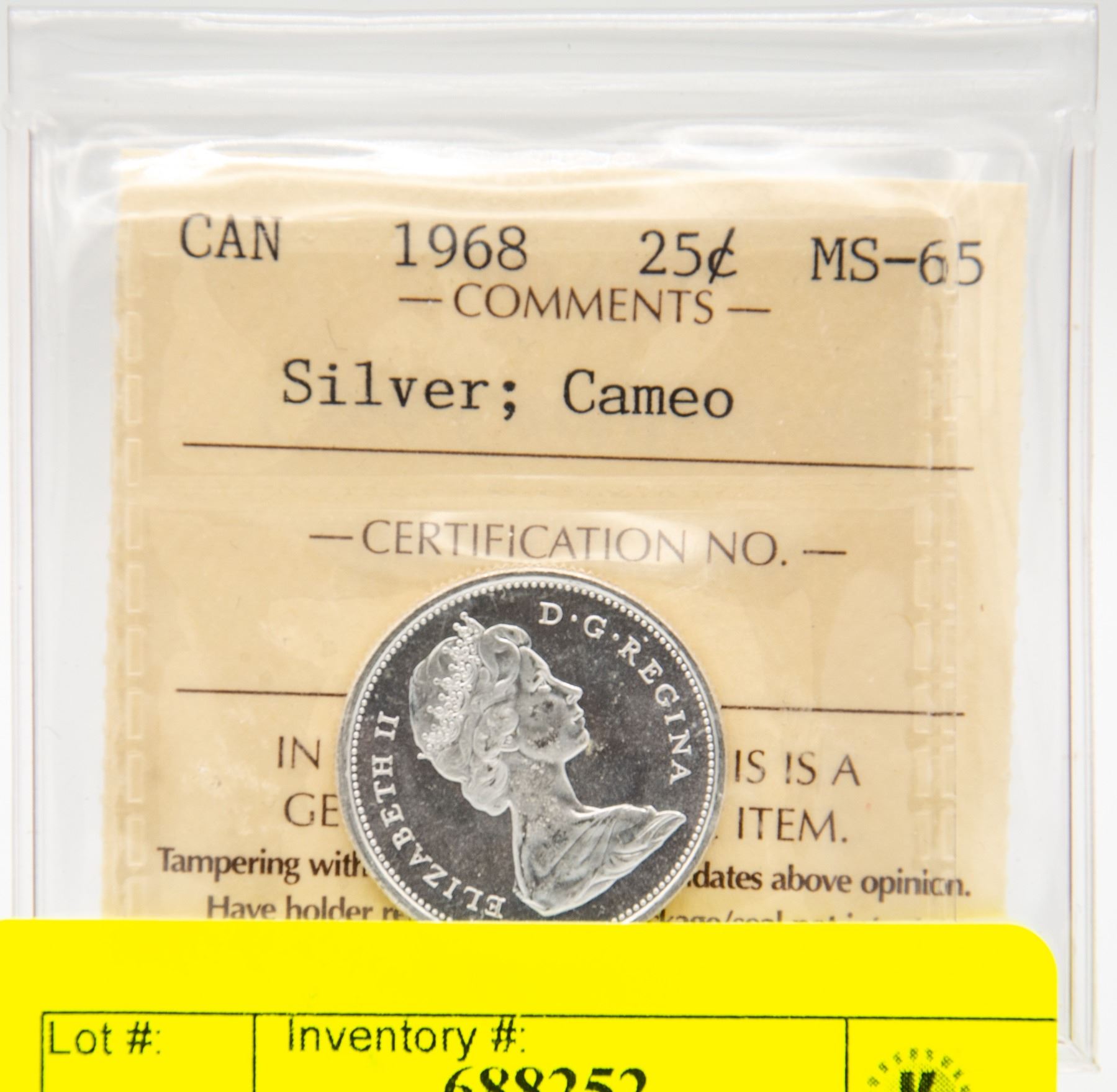 1968 MS-65 CANADIAN CERTIFIED SILVER QUARTER