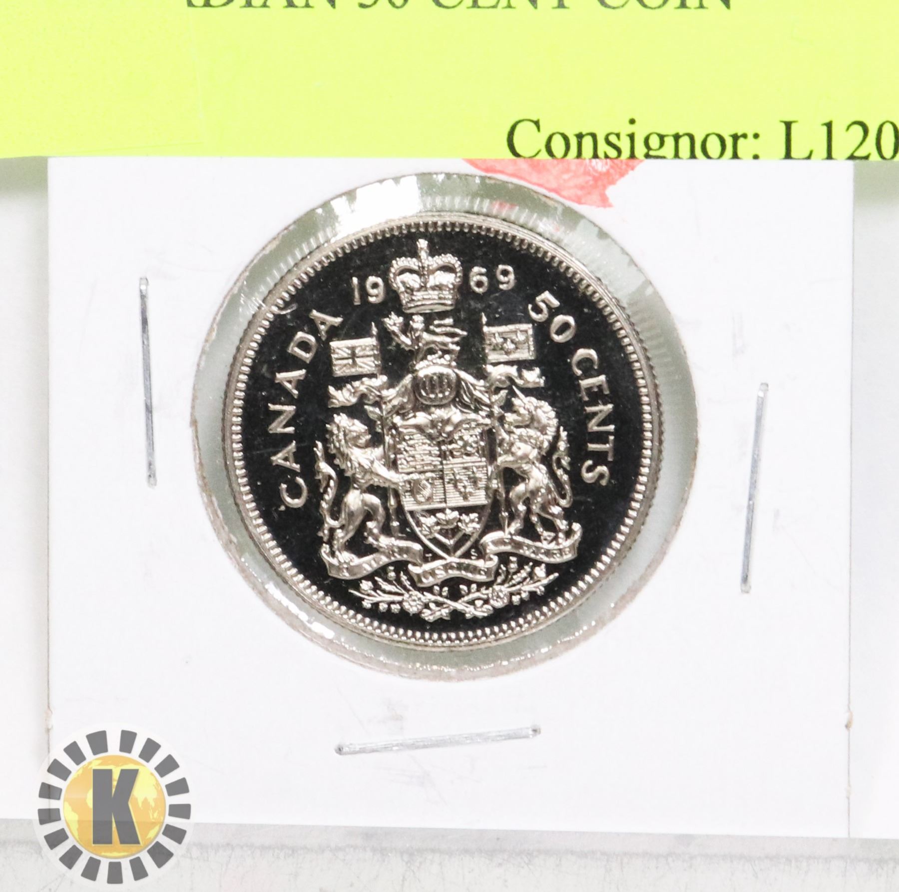 VERY LOW MINTAGE 50 CENTS 1969: 7,112,929 PROOF. FIFTY CENT PIECES FROM 1987 TO DATE HAVEN'T ENTERED CIRCULATION IN ANY GREAT NUMBERS DUE TO HOARDING BY INVESTORS AND THE PUBLIC.***ITEM(S) LOCATED IN LETHBRIDGE ALBERTA