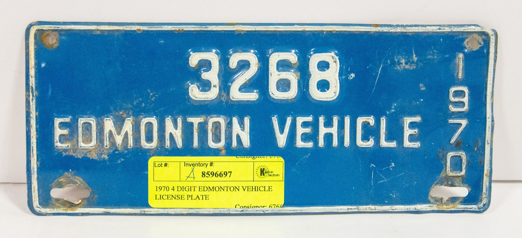 1970 4 DIGIT EDMONTON VEHICLE LICENSE PLATE