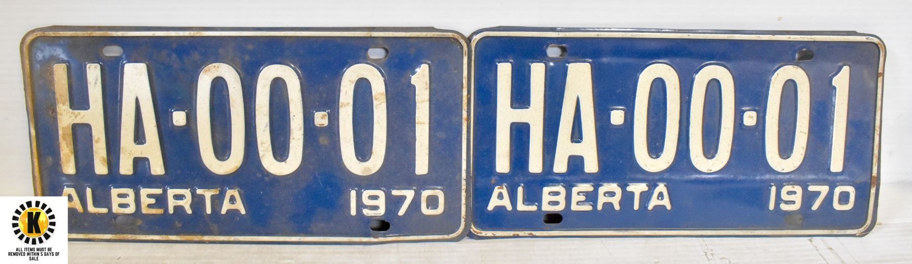 1970 MATCHING PAIR OF EARLY NUMBER ALBERTA LICENSE PLATES HA-00-01