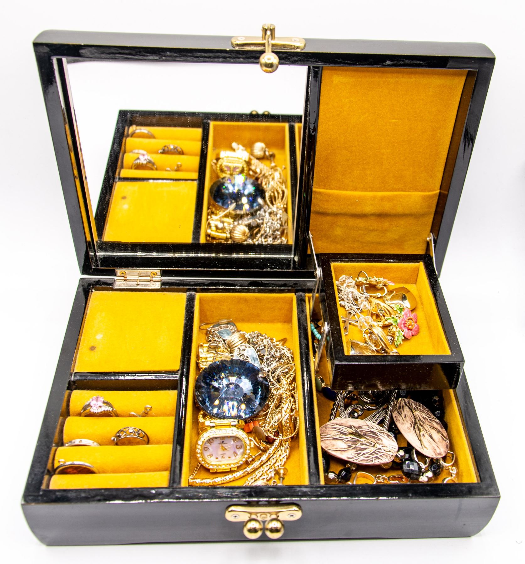 1970'S ESTATE MUSICAL JEWELRY BOX WITH CONTENTS