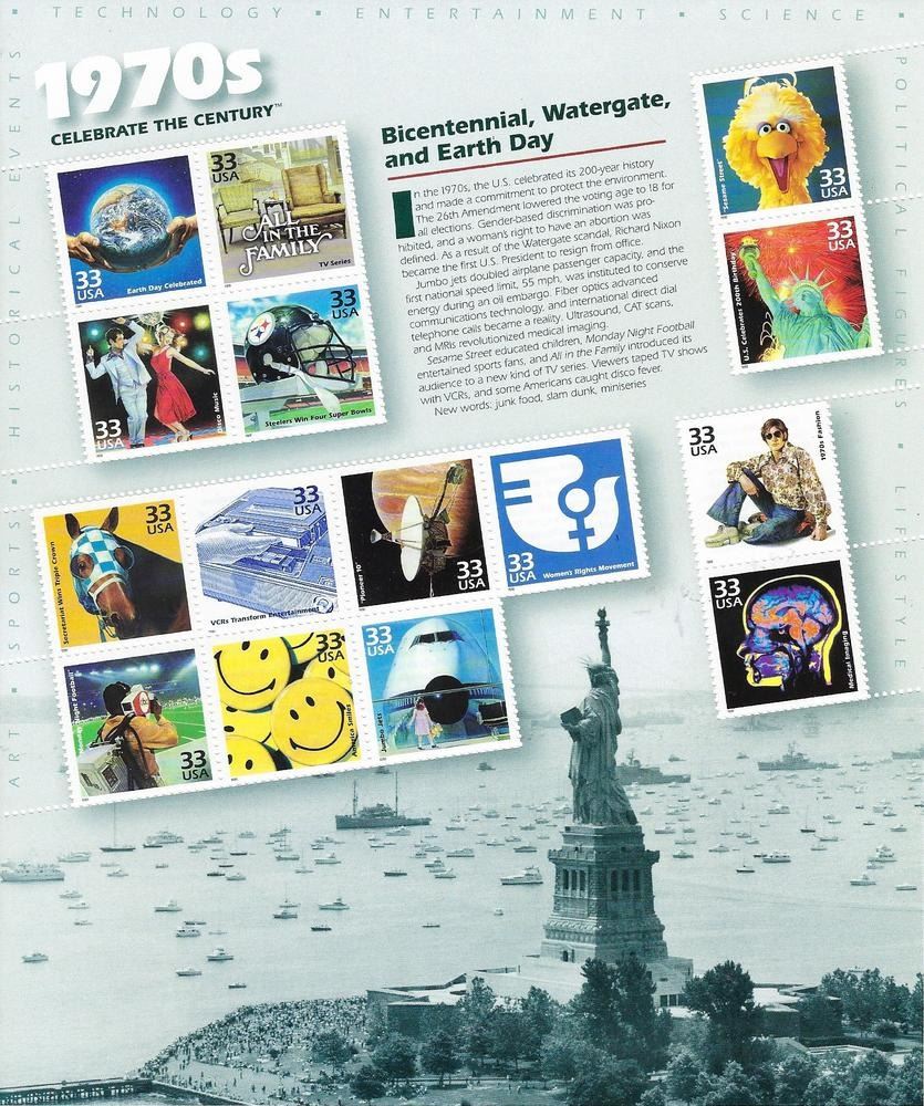 USPS Celebrate The Century 1970s Sheet of Fifteen 33 Cent Stamps Scott 3189