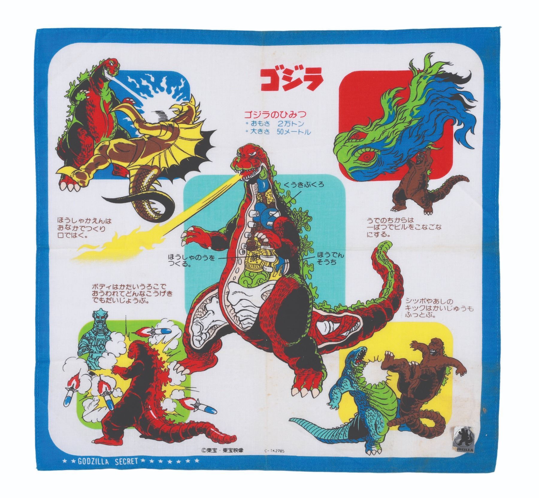 1970s. GODZILLA Kaiju “Cutaway” Handkerchief. 11. 5” x 12” . VG+.
