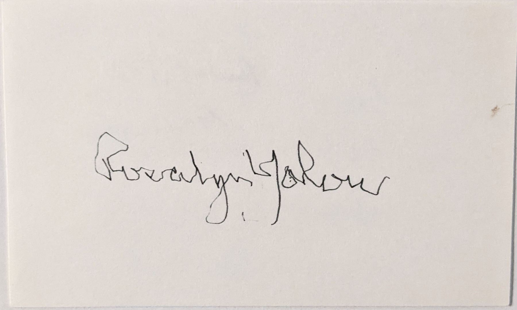 1972 Nobel Prize Rosalyn Yalow autograph. 3 x 5 inches.