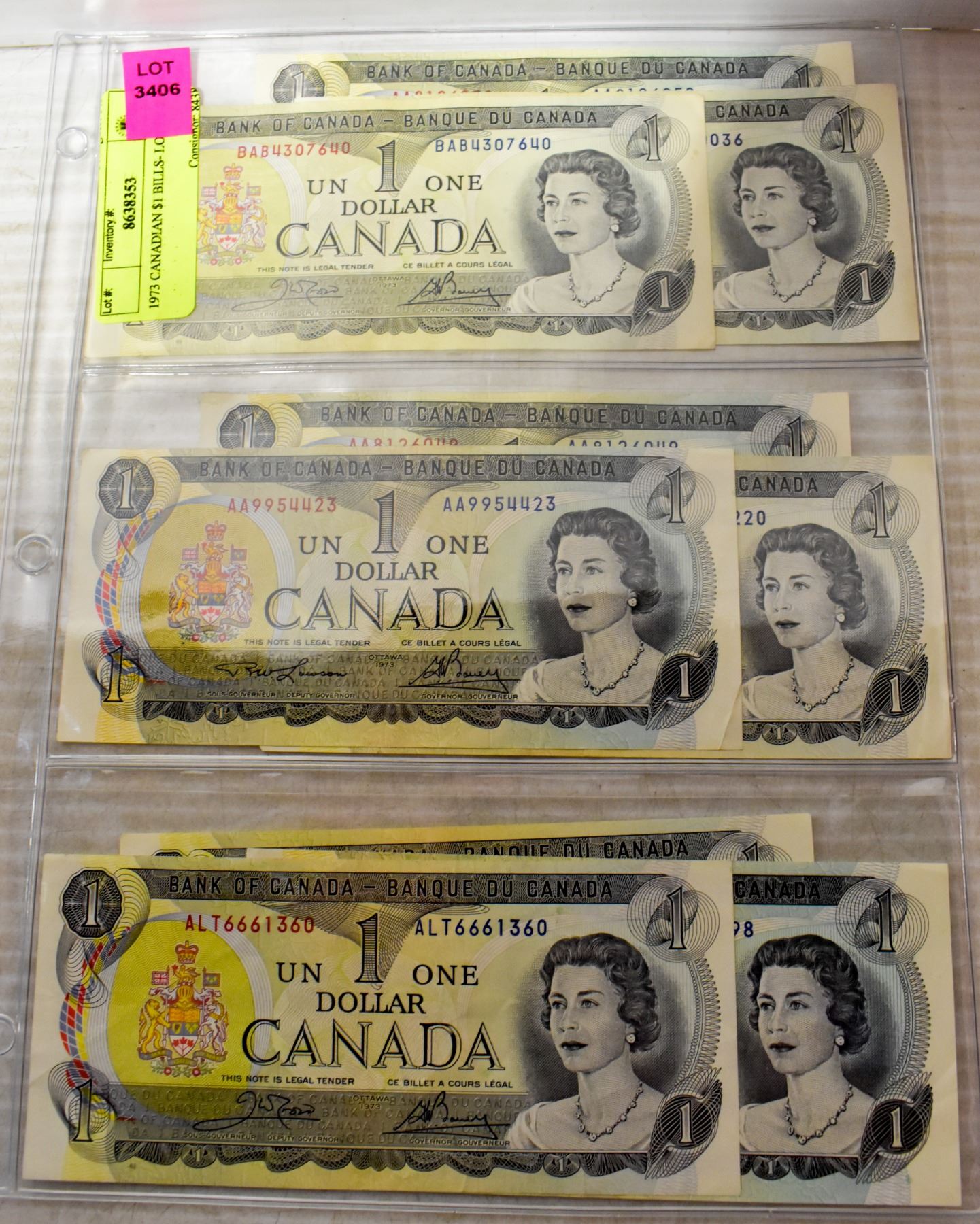1973 CANADIAN $1 BILLS- LOT OF 9