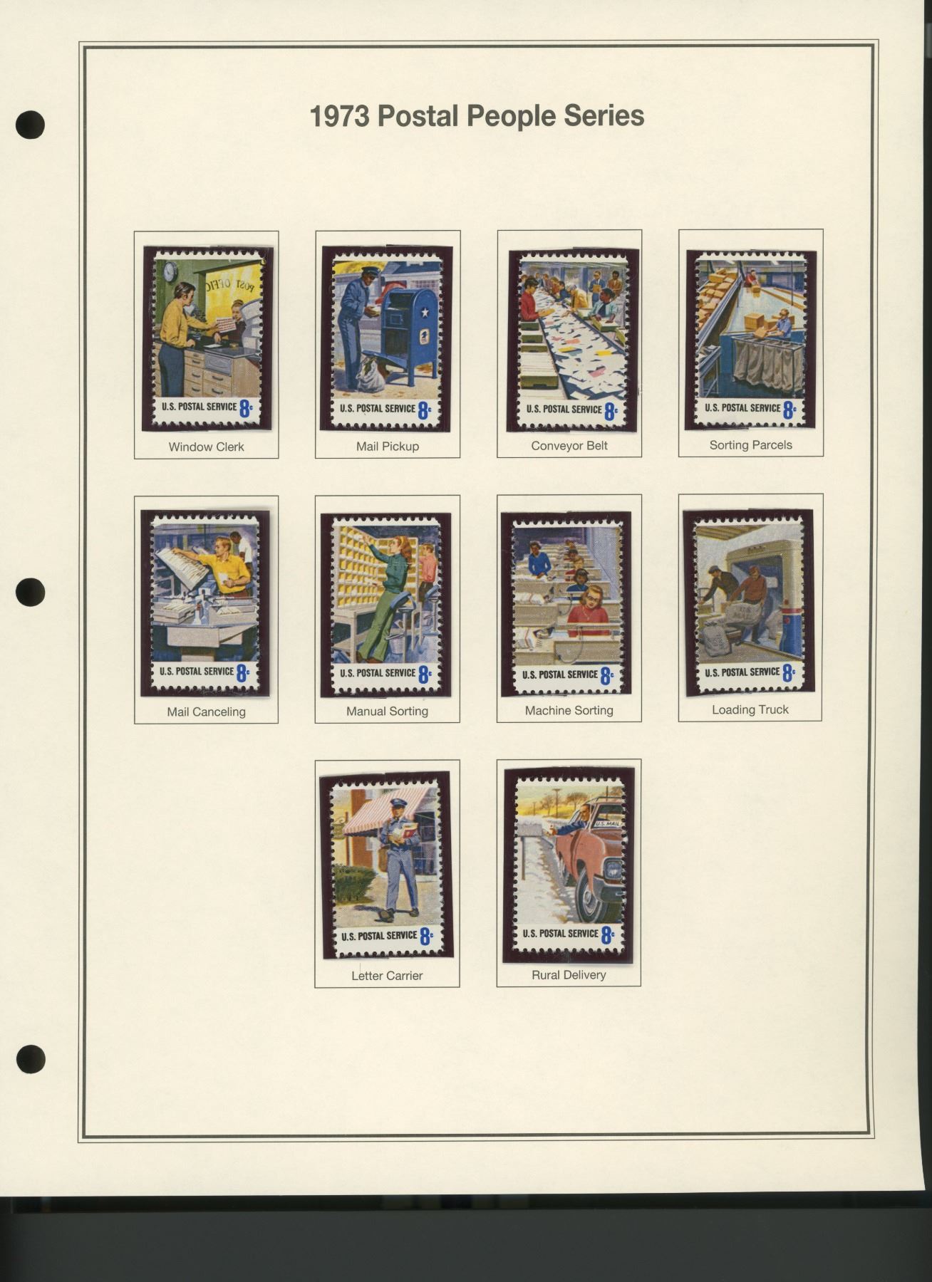 #1489-98 – 1973 10 x 8c Postal Service Employees Stamps