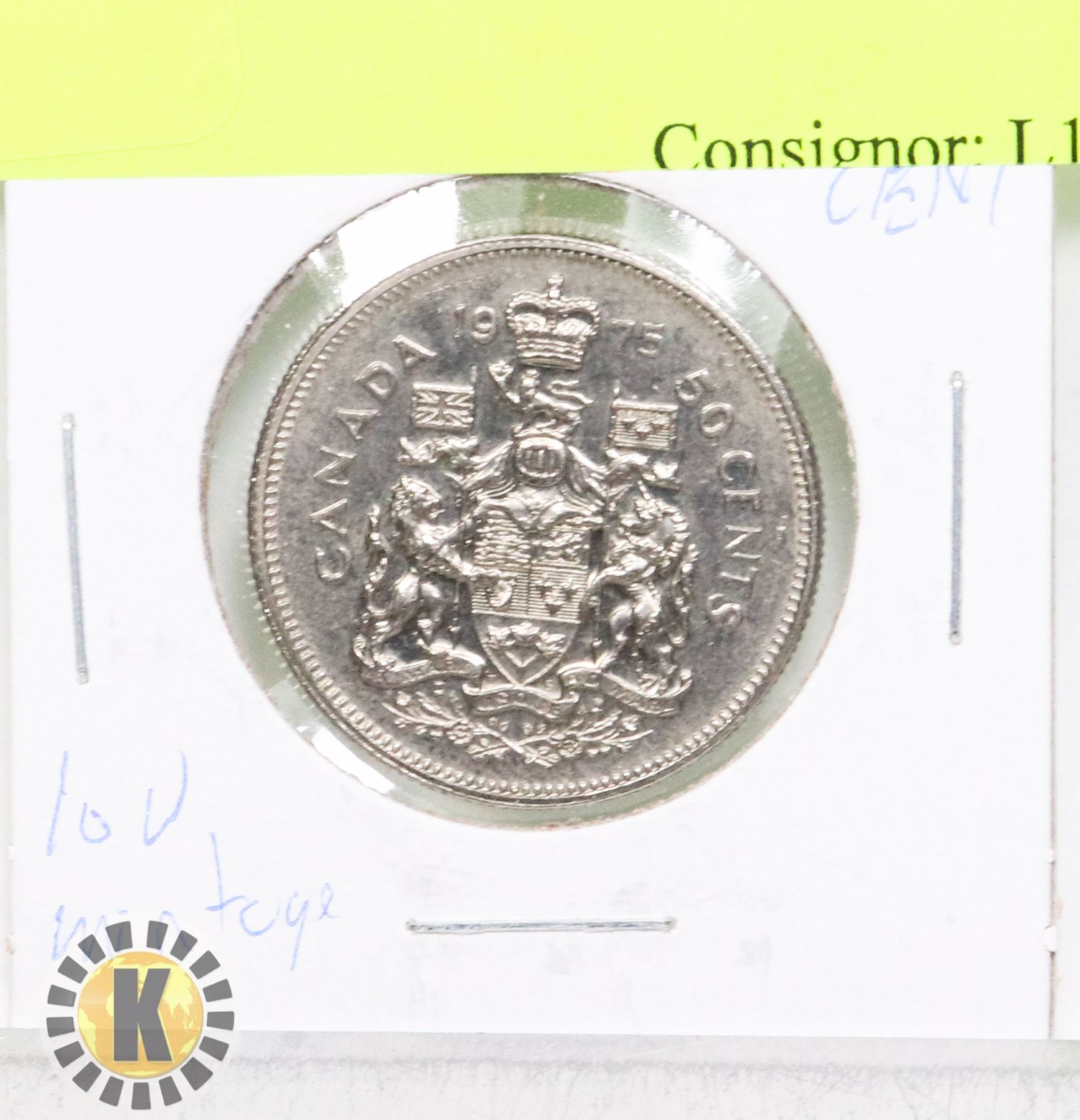 VERY LOW MINTAGE 50 CENTS 1975: 3,710,000. FIFTY CENT PIECES FROM 1987 TO DATE HAVEN'T ENTERED CIRCULATION IN ANY GREAT NUMBERS DUE TO HOARDING BY INVESTORS AND THE PUBLIC.***ITEM(S) LOCATED IN LETHBRIDGE ALBERTA