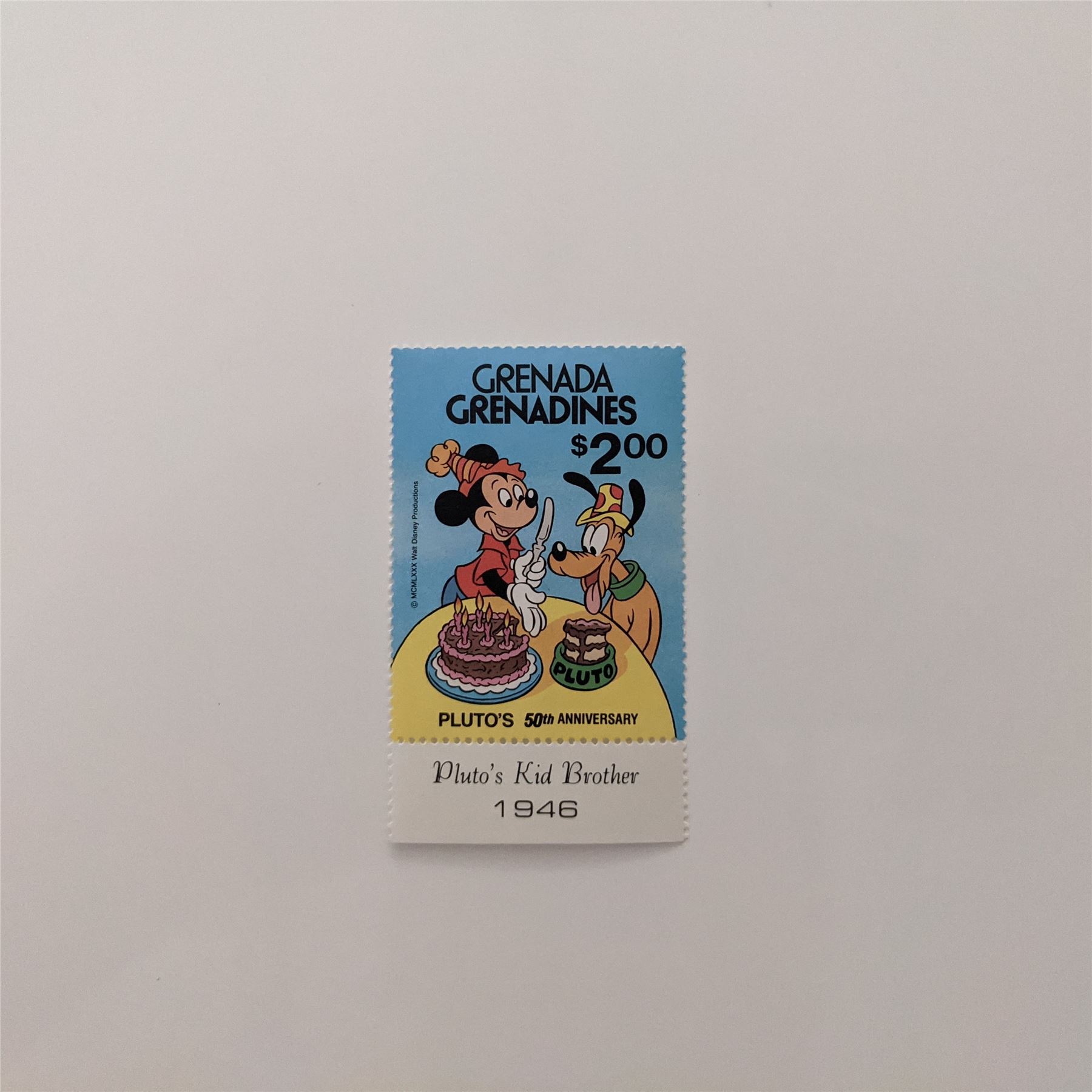 1981 Grenada Pluto's 50th Anniversary Stamp. Pluto's Kid Brother (1946)