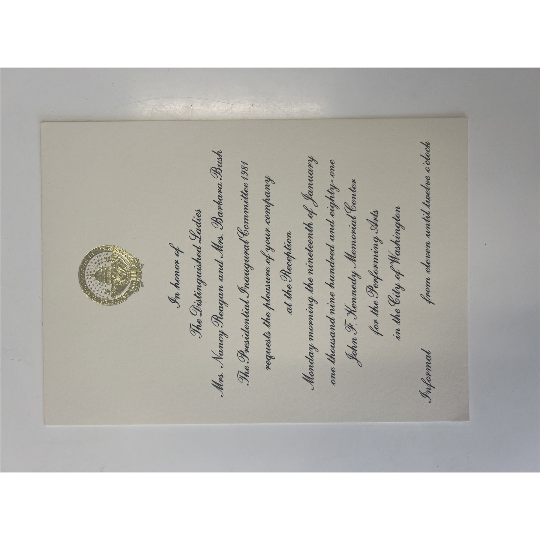 1981 Nancy Reagan and Barbara Bush Inaugural Reception invitation. 5x7 inches