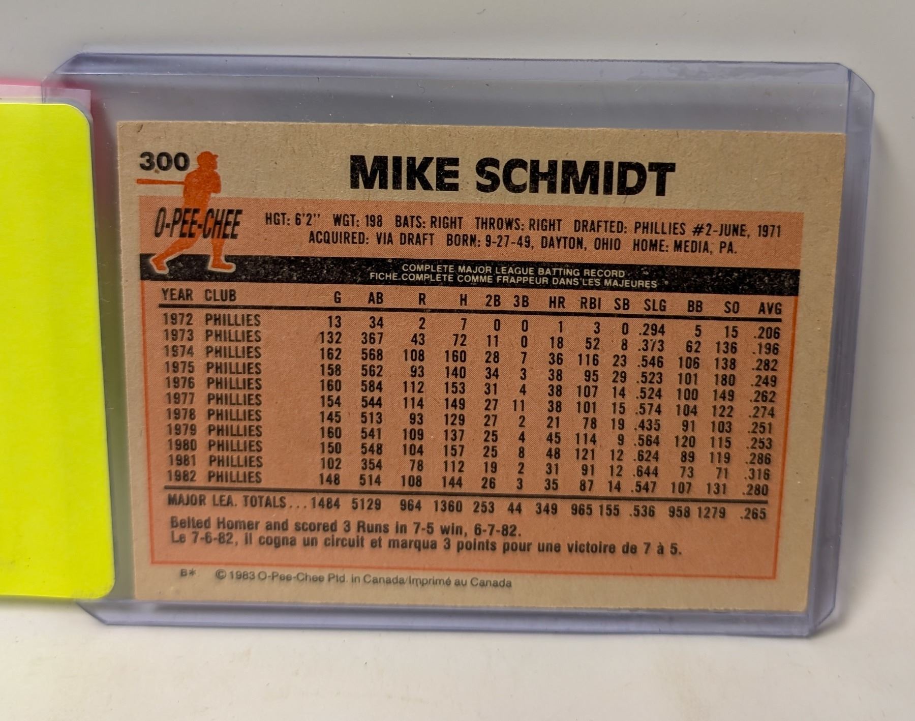 1982 MIKE SCHMIDT BASEBALL CARD
