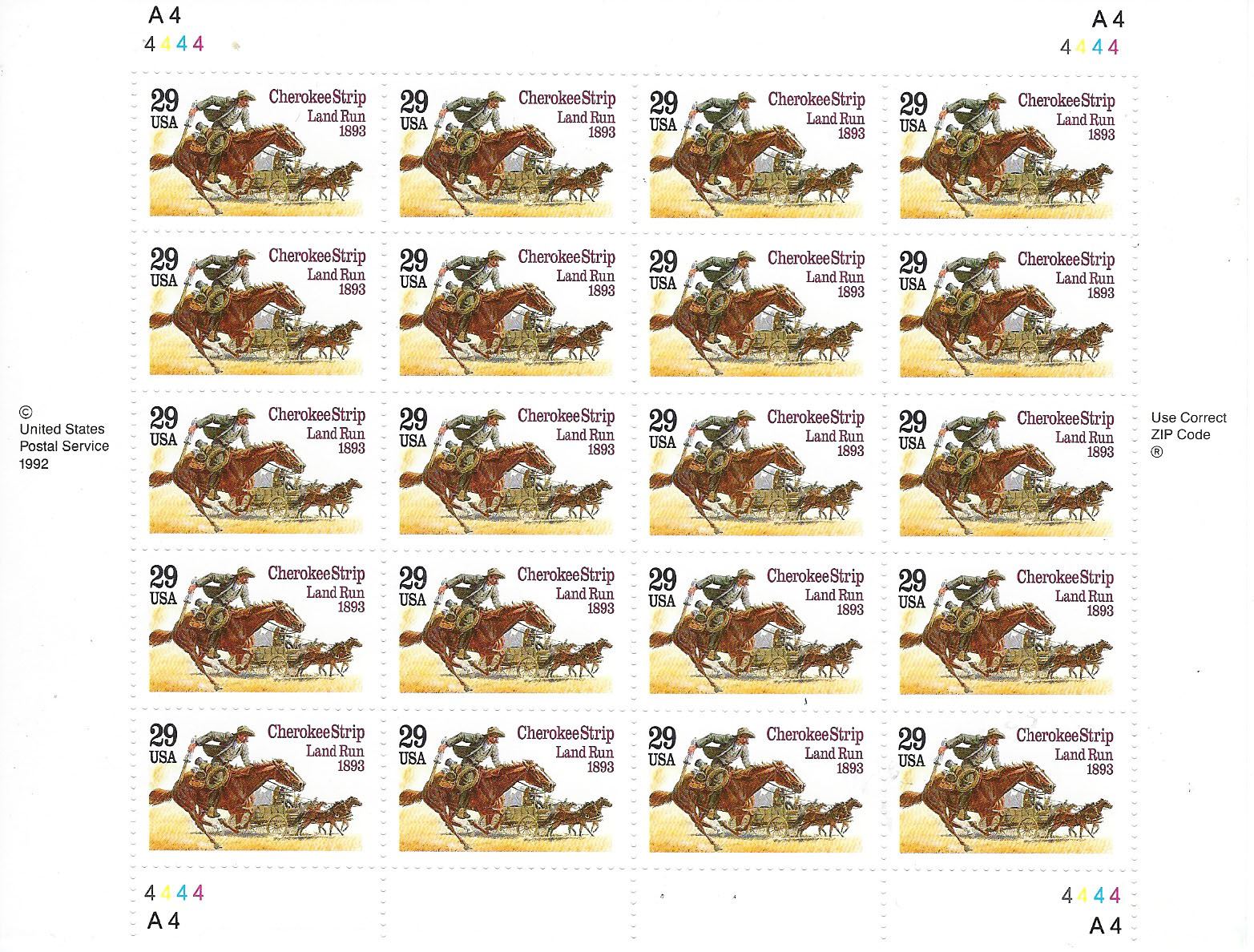1983 Cherokee Strip Land Run stamp sheet 20 x 29 cent stamps