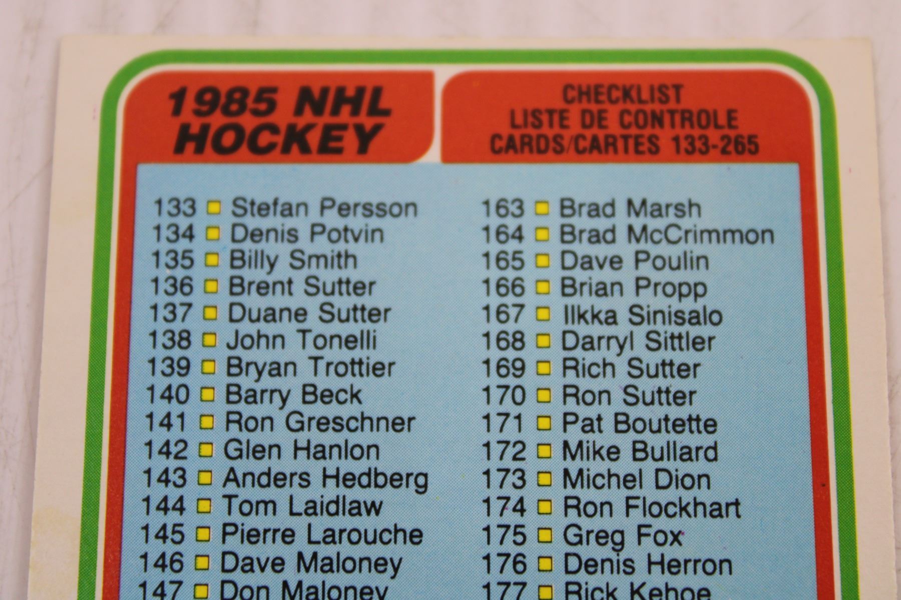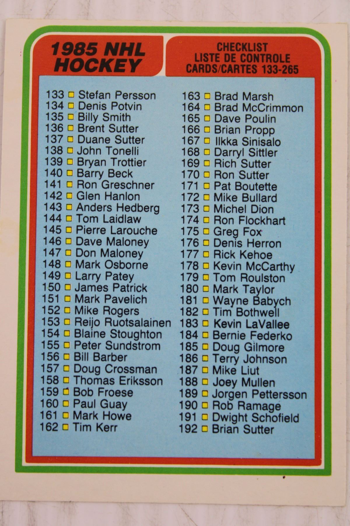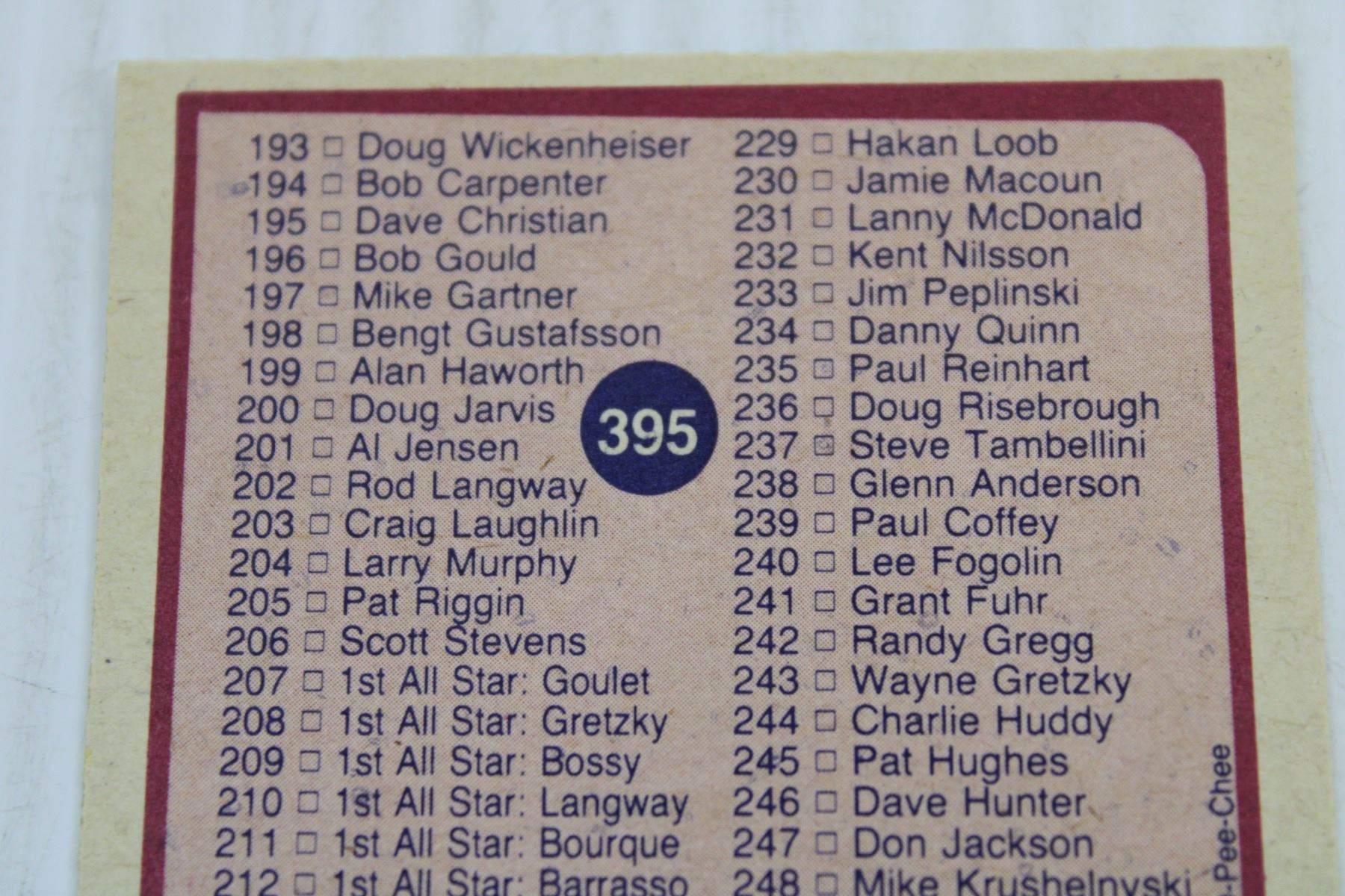 1984-85 OPC Checklist (Unmarked)