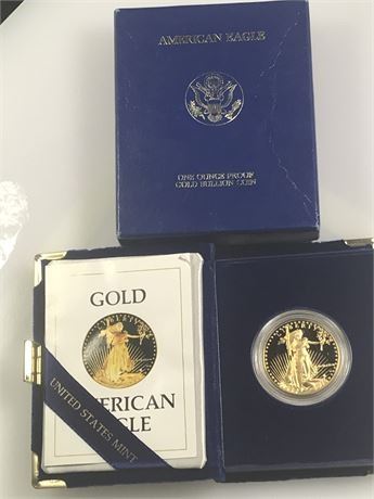 1986 1 ozt Proof Gold Eagle in OGP First Year of Issue. Some wear on outer box. Estimate: $2,500 6283.01
