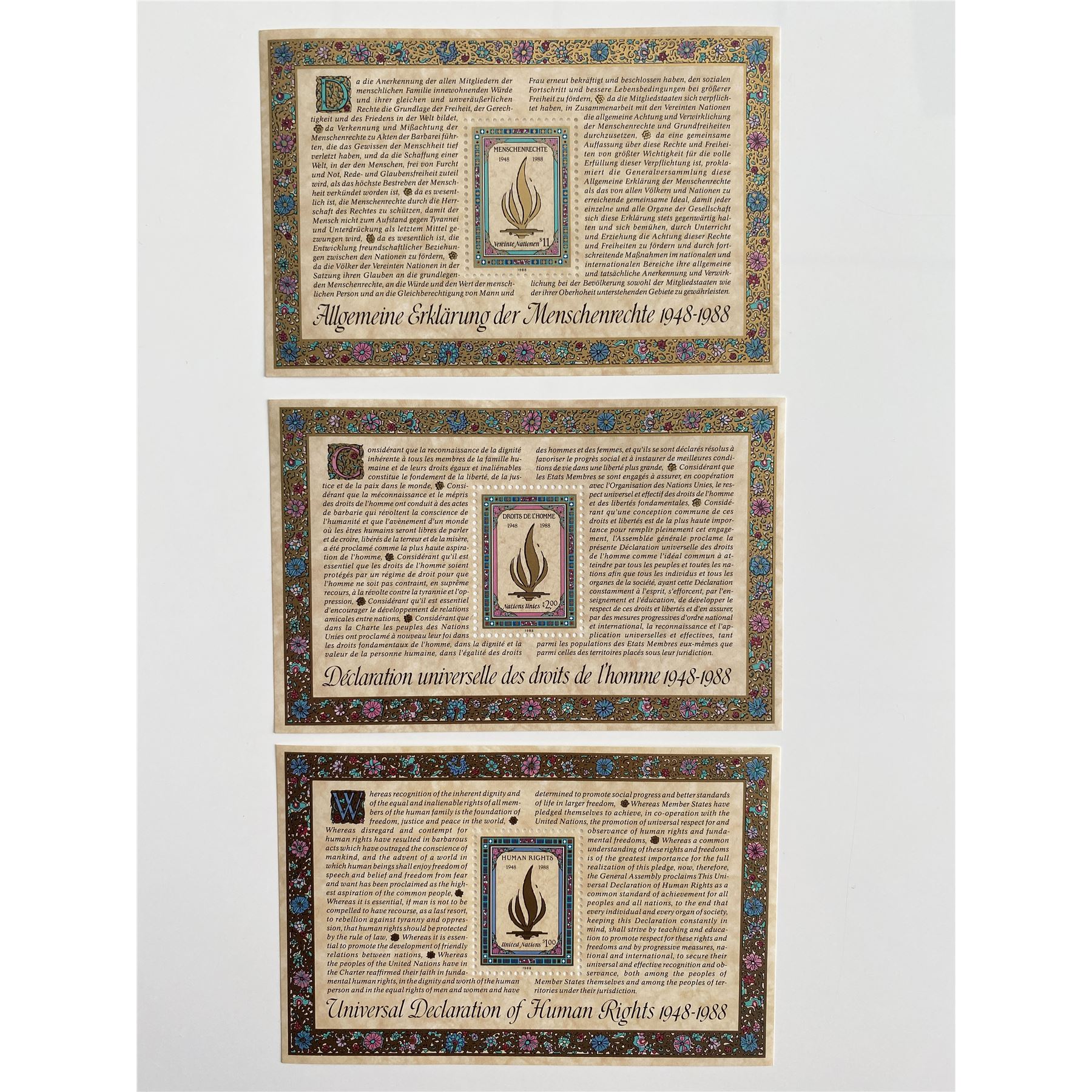 1988 United Nations set of 3 stamps